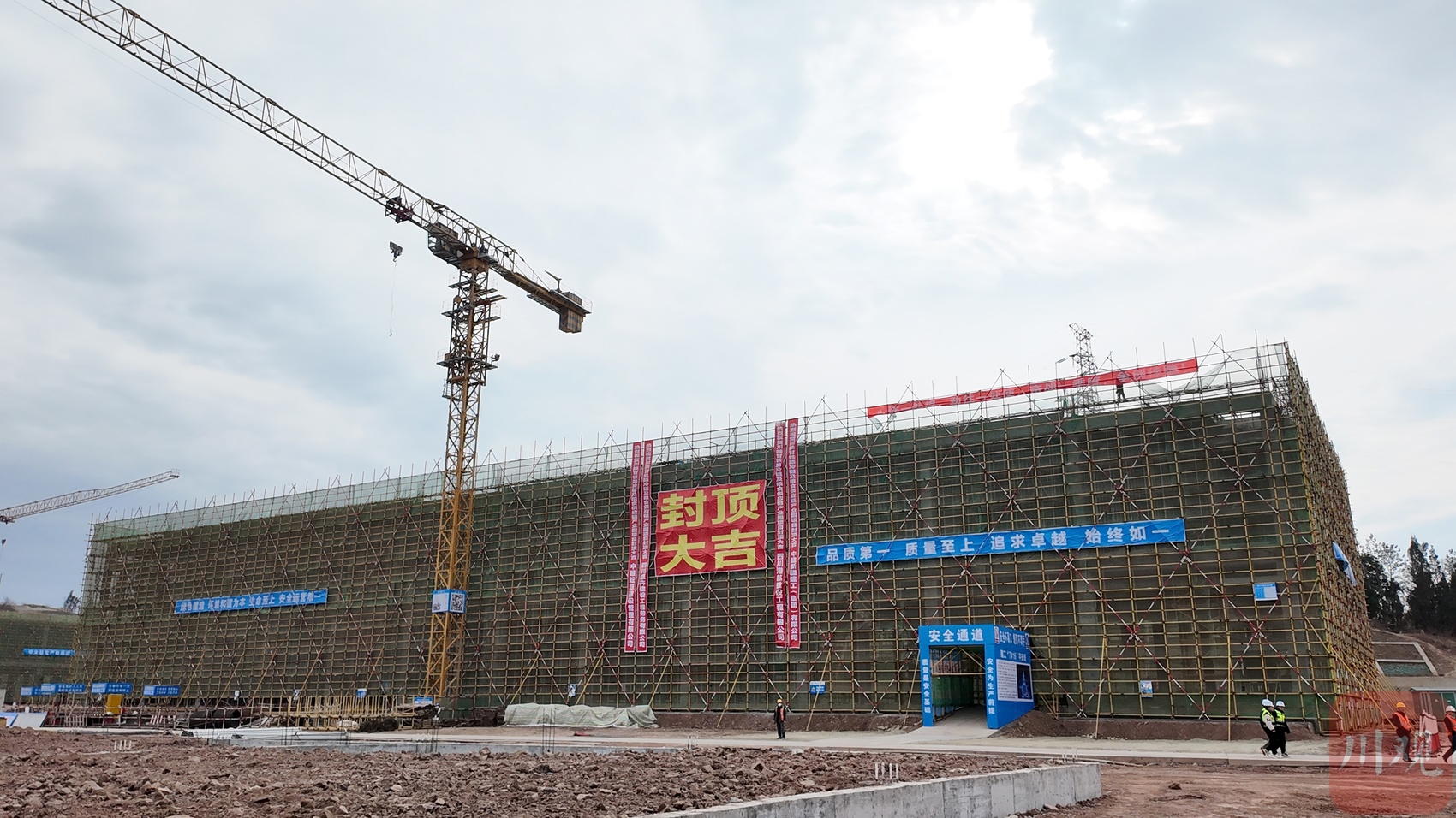 2月18日上午,走进川陕甘铁路冷链及粮食供应链产业园项目现场,四川在线记者远远地就看见大门正对的建筑上挂着“封顶大吉”的横幅。这里紧邻广元海关监管作业场所,距离广元南站、西站两大货运场站不到3公里。