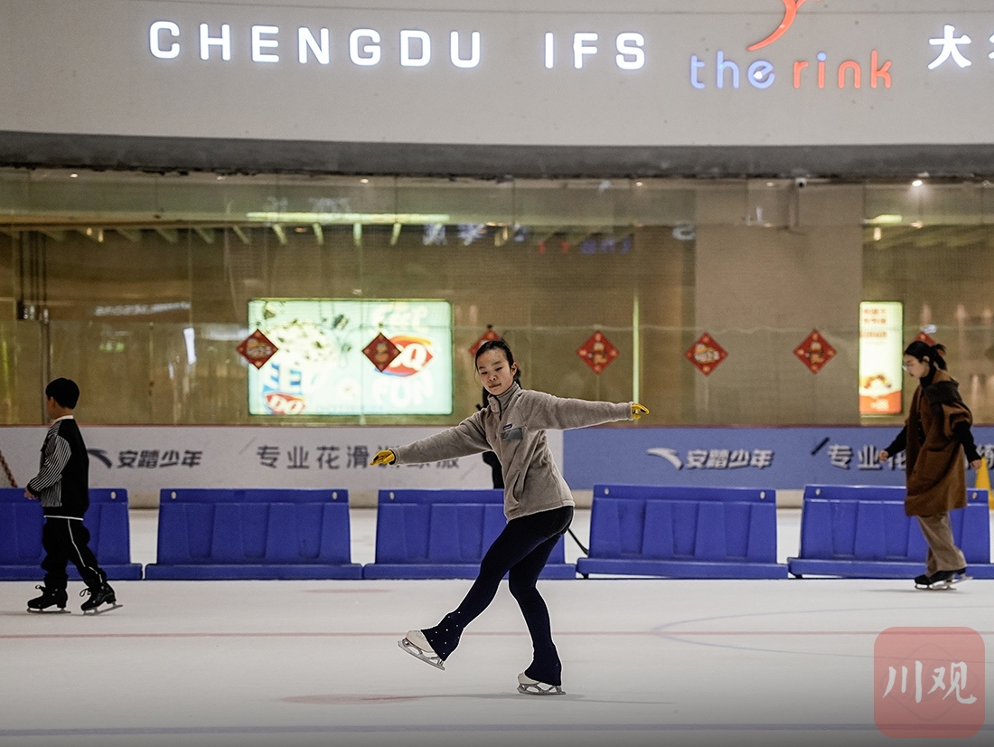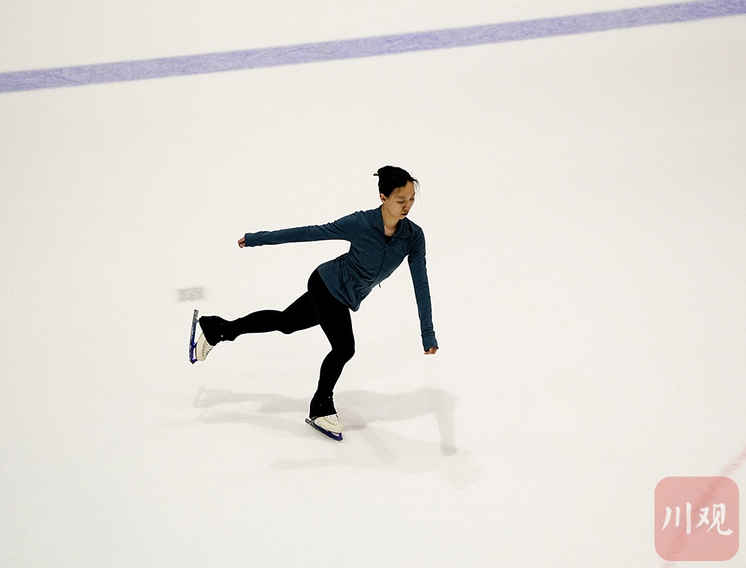 在成都市锦江区的一处冰场里,一位少女正在专注地练习冰上舞蹈。