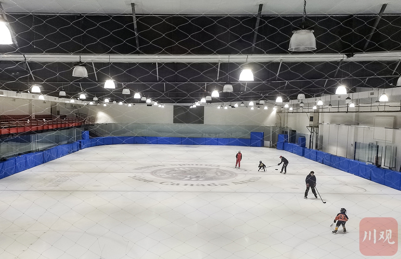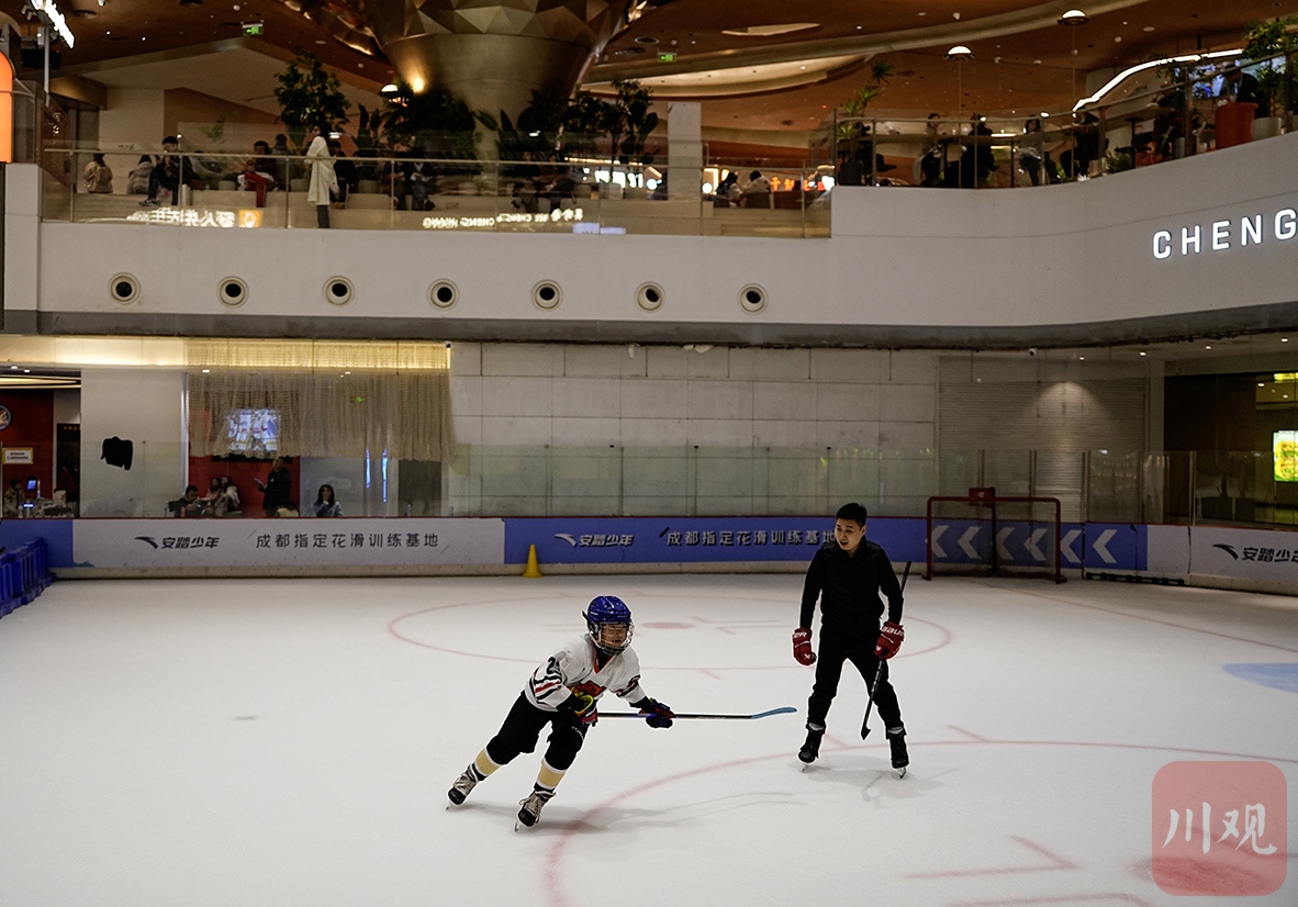 在成都市锦江区,冰球运动成为了青少年喜爱的冰雪项目之一。