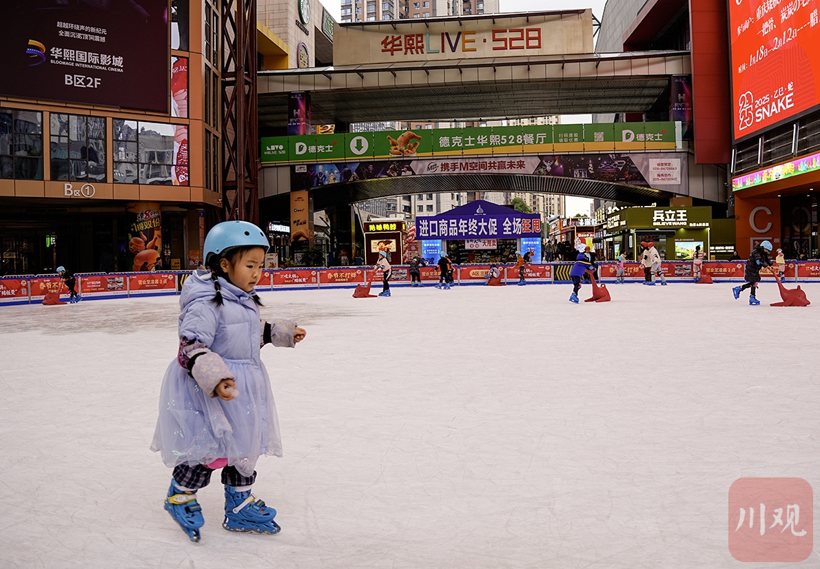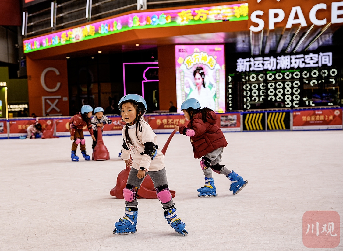 成都市锦江区,冰上运动吸引了众多青少年和儿童踊跃参与。