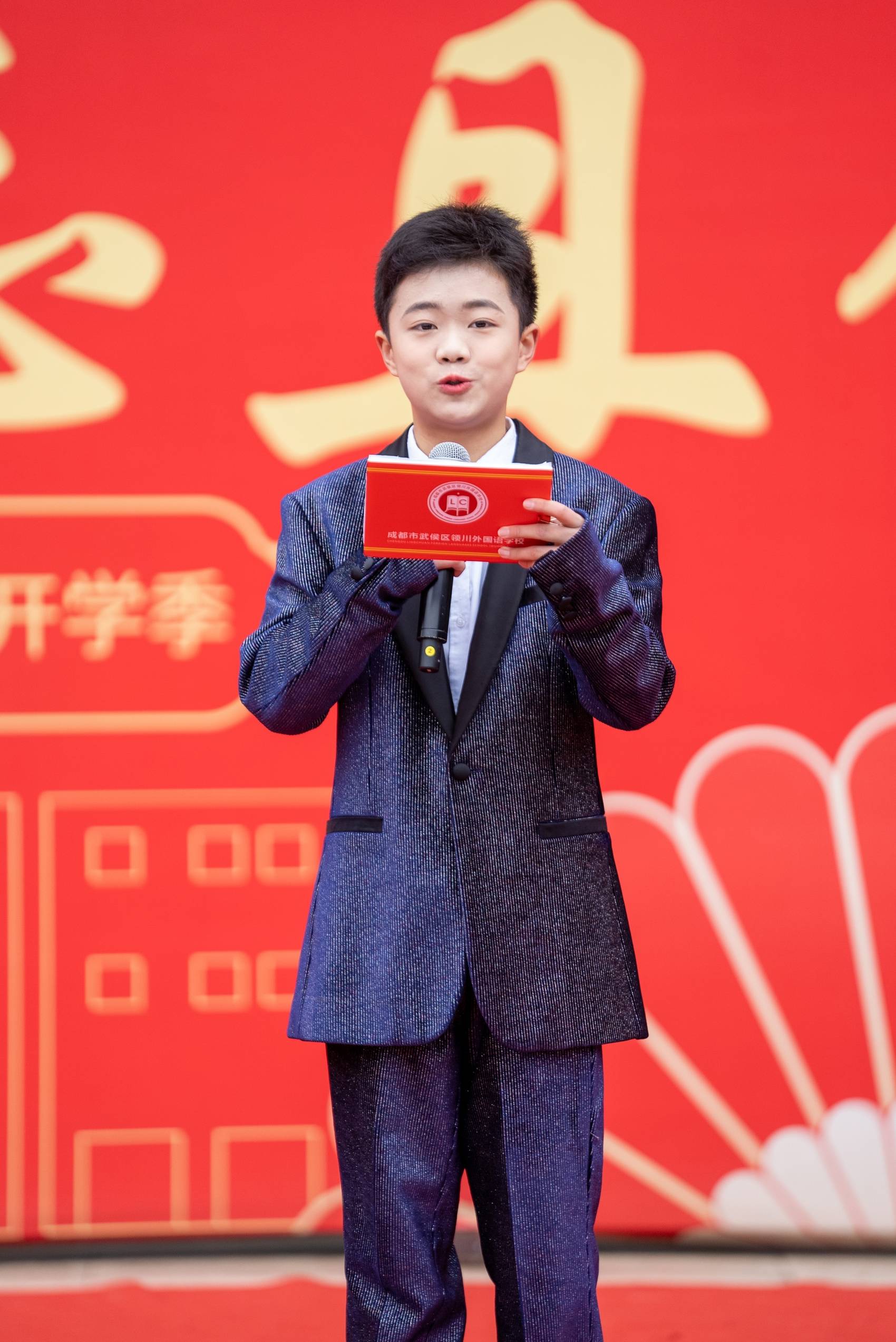 其中,就读于成都市武侯区领川外国语学校的初二年级学生王智行,是电影角色“申小豹”的配音演员。2月20日早上,在这所学校举办的开学典礼上,四川在线记者采访到了王智行同学。