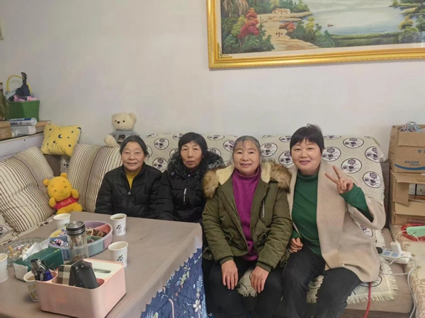 赵明金(左一)和家人一起阅读妹妹寄来的信