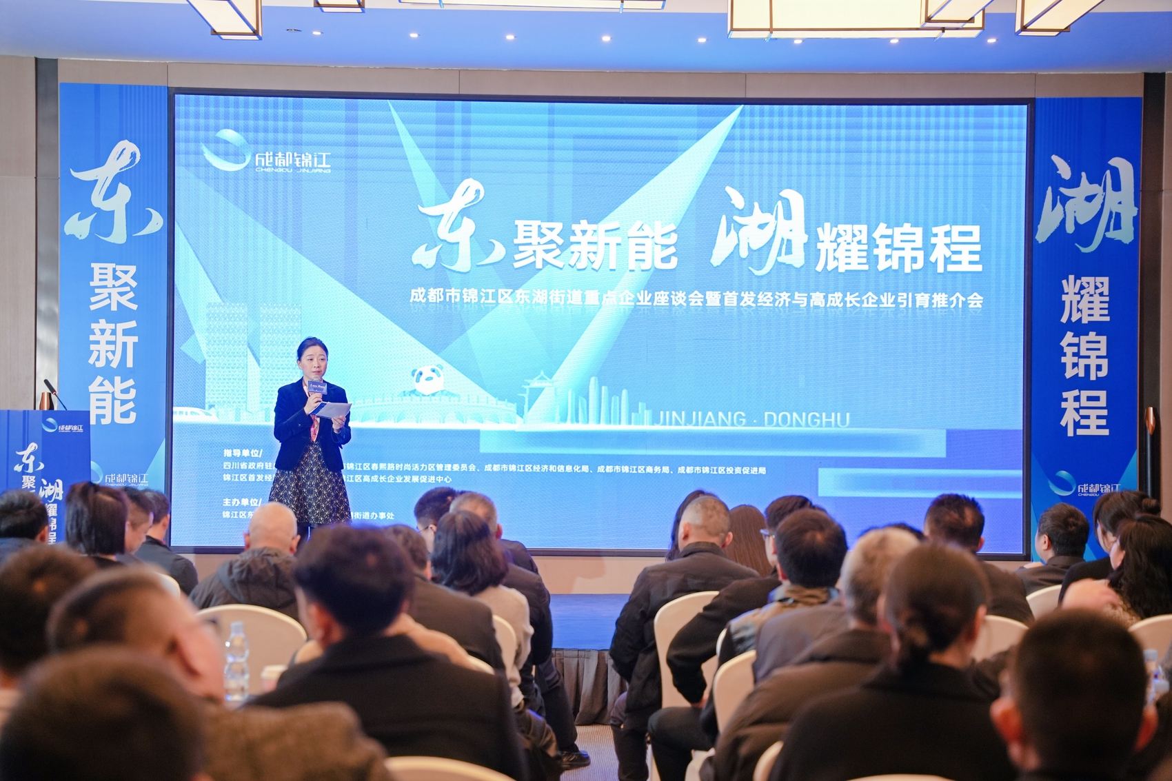2月21日,成都市锦江区东湖街道举办重点企业座谈会暨首发经济与高成长企业引育推介会,此次会议以“东聚新能·湖耀锦程”为主题,吸引众多企业代表,吹响东湖街道全力拼经济的冲锋号,冲刺2025“开门红”。