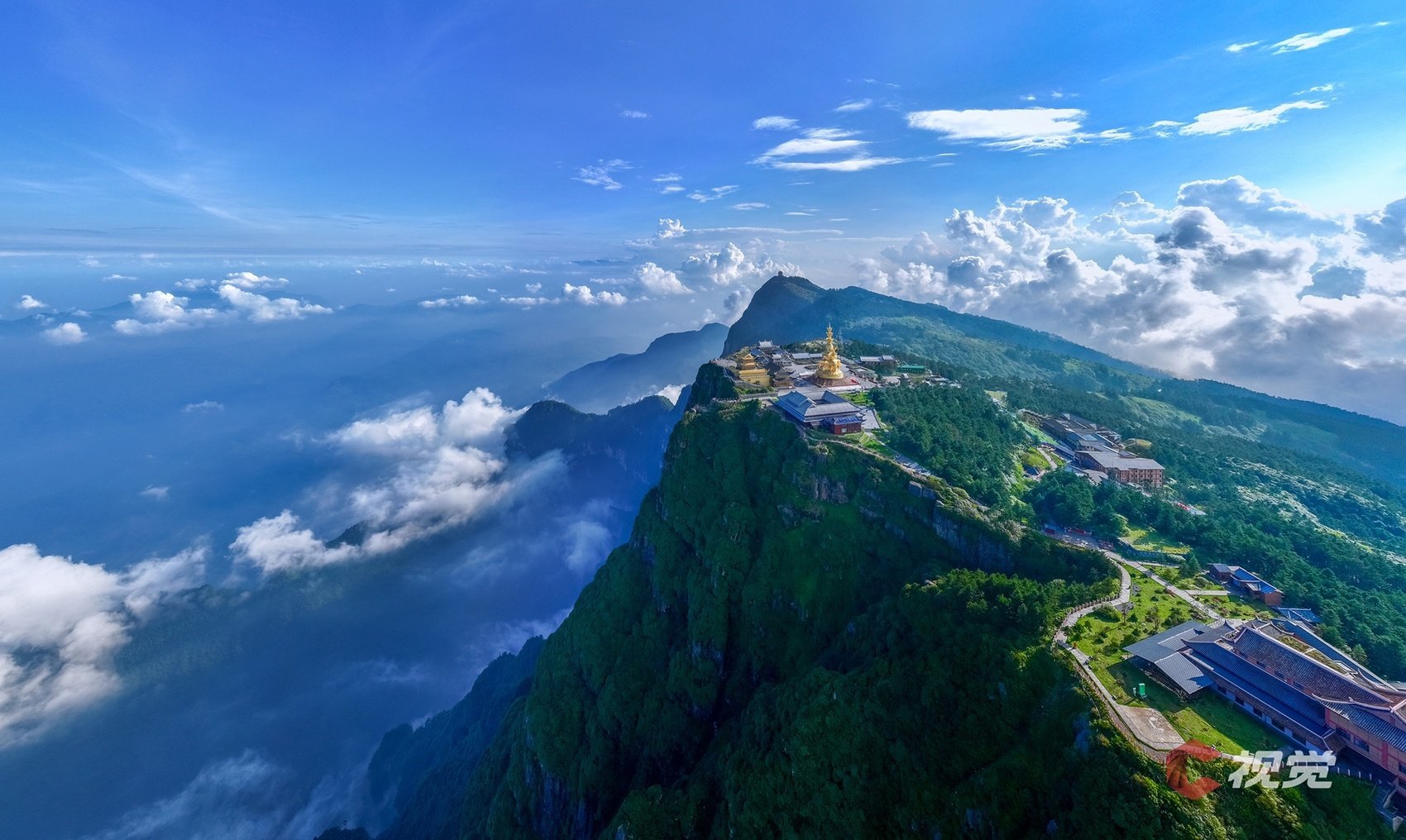 秋季天高云轻,远眺峨眉山金顶与万佛顶同框。C视觉摄影师 张元戎