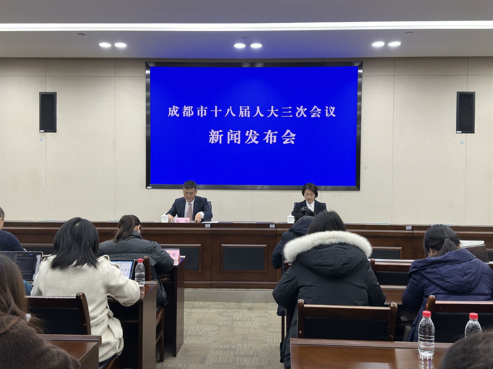 2月24日,成都市十八届人大三次会议新闻发布会举行。成都市人大常委会办公厅副主任林一凡就会议相关情况进行介绍并回答记者提问。