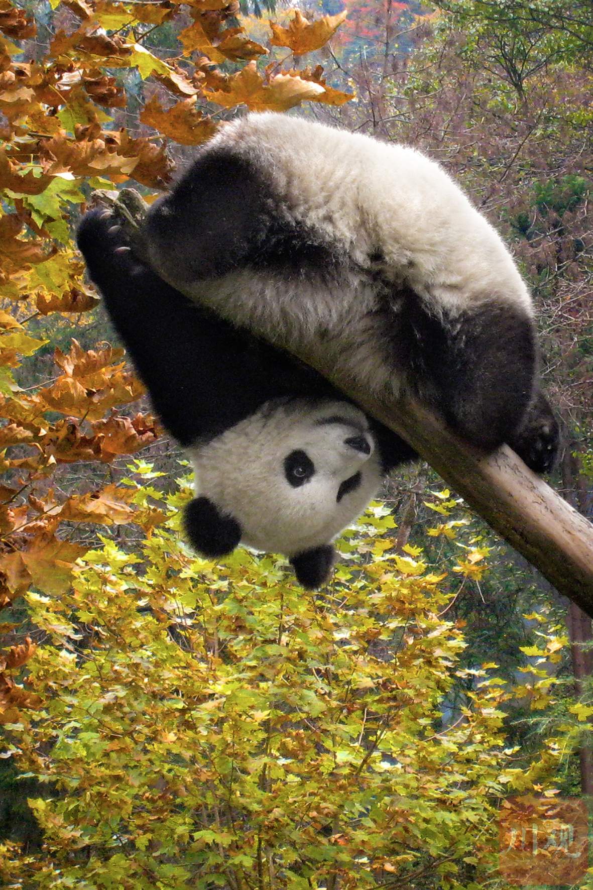 大熊猫的 “倒挂卖萌” 时刻。