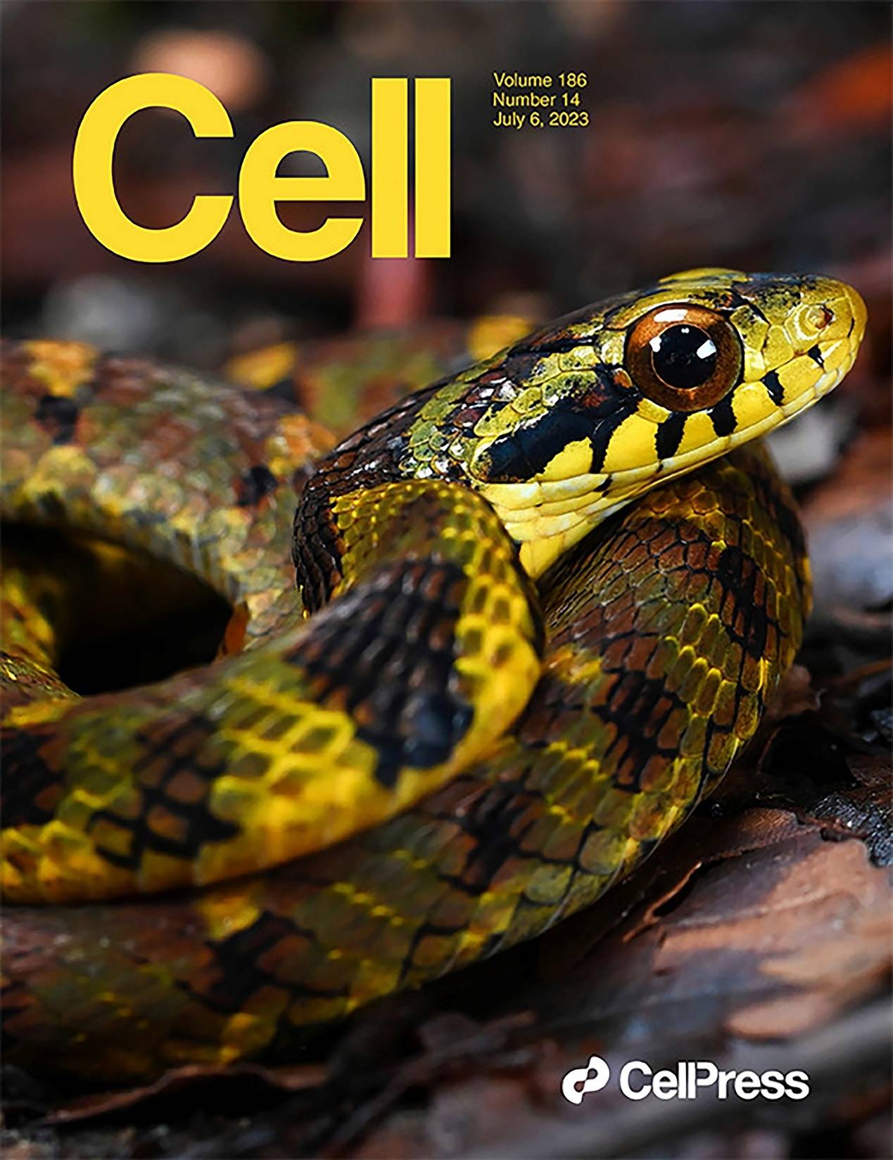 该团队的研究成果以封面论文形式发表于国际期刊《Cell》第186卷14期,封面物种系我国所产无毒蛇类大眼斜鳞蛇(图片由受访者提供)