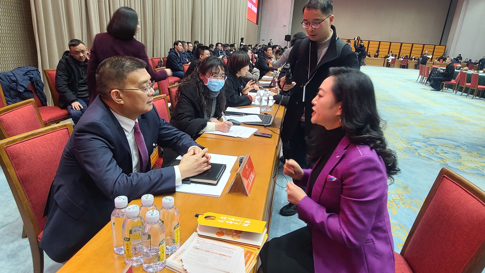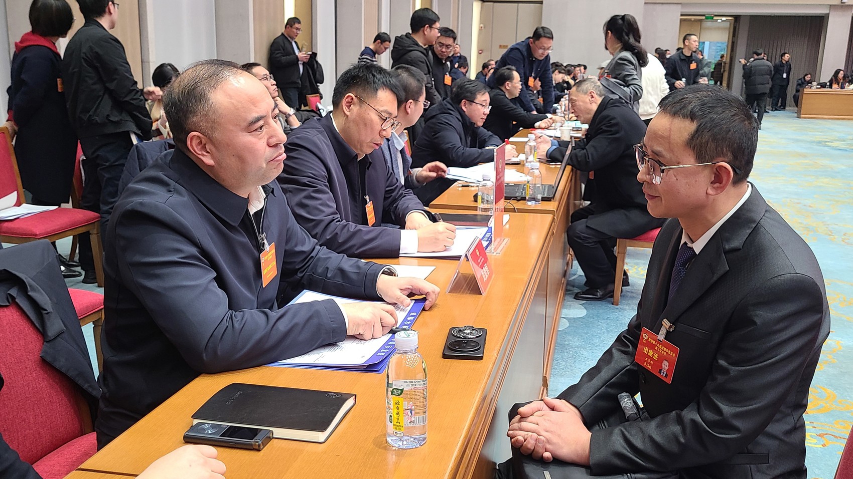 与成都市水务局数桌之隔的成都市农业农村局,也是人气旺席。中央一号文件刚颁发,委员王友咨询关于“2025年支持村集体经济发展的政策”。局长古建桥向他介绍了成都现况——全市2288个村,去年都实现了集体经济收入全部过10万元的成绩。“但是不够均衡,好的村收入上亿,比如宝山村集体收入5亿,村民人均分红5万多,而少的就只有10万元。”古建桥说,发展现代农业,壮大村集体经济,带动乡村共富,2025年度仍然是农村工作的重点之一。