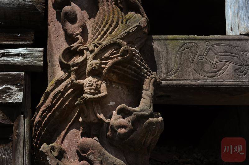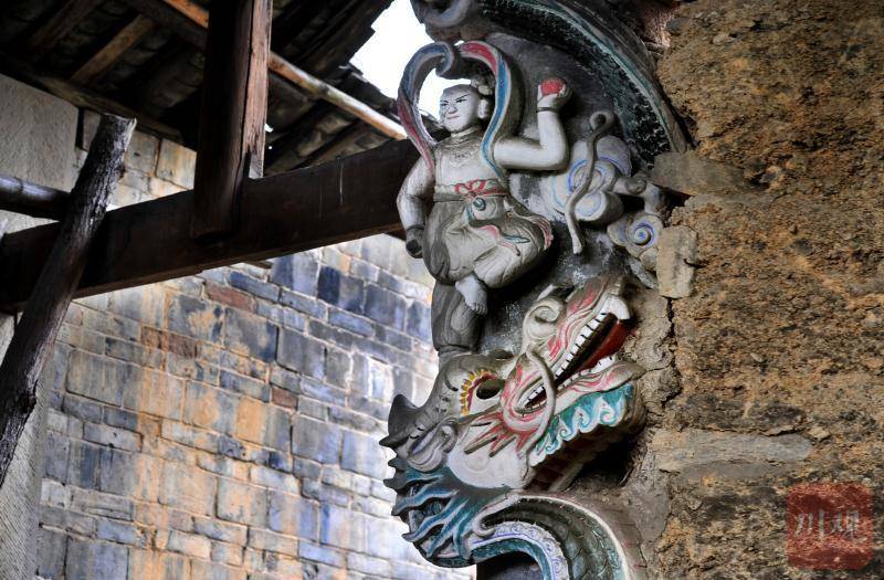 泸县弥陀寺内大殿柱头上的哪吒造像。