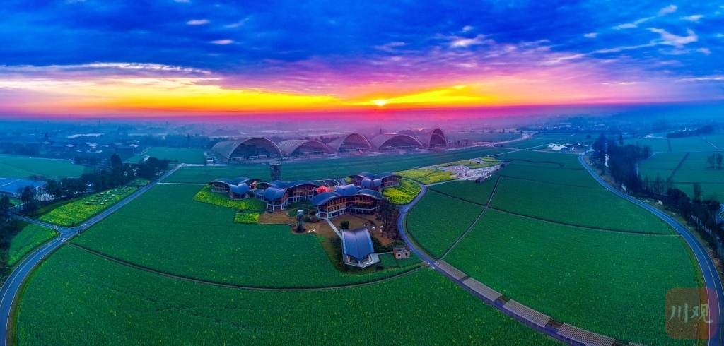2月25日,成都雨后天晴。新津天府农博园沐浴在灿烂的朝霞中,处处一片欣欣向荣的景象。C视觉 杨武 摄