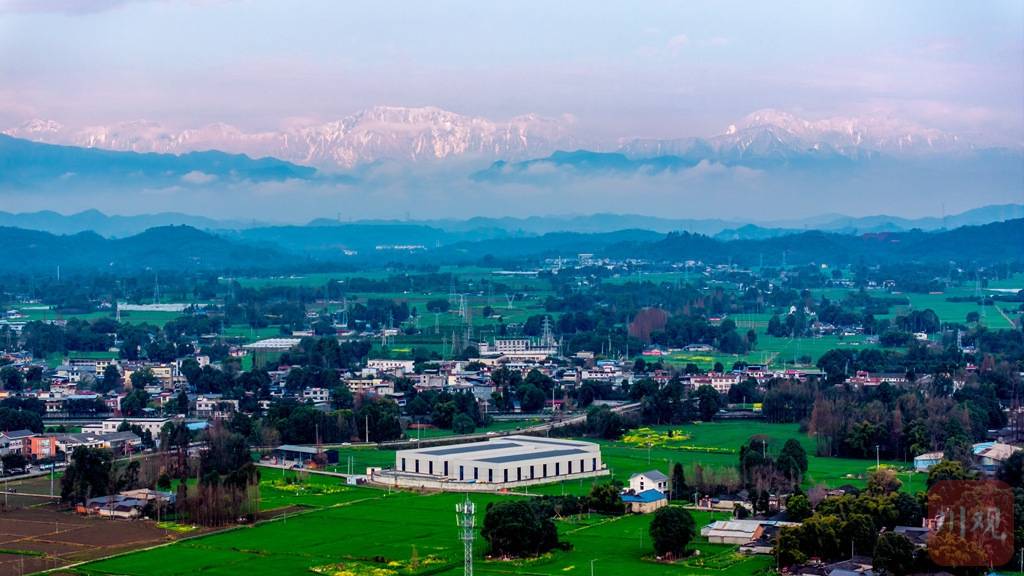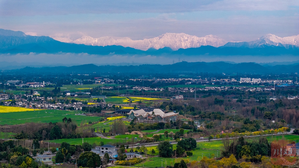 2月25日,成都雨后天晴。崇州的原野与远处的雪山交相辉映,处处一片明媚景象。C视觉 黄加荣 摄