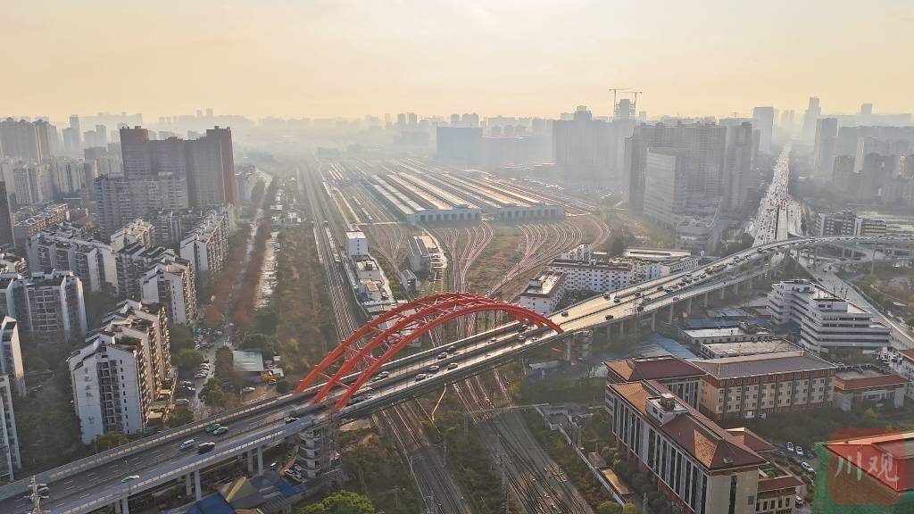 2月25日,成都雨后天晴。晨光下的成都高铁站和车水马龙的城市一起迎来生机勃勃的新一天。C视觉 熊能 摄