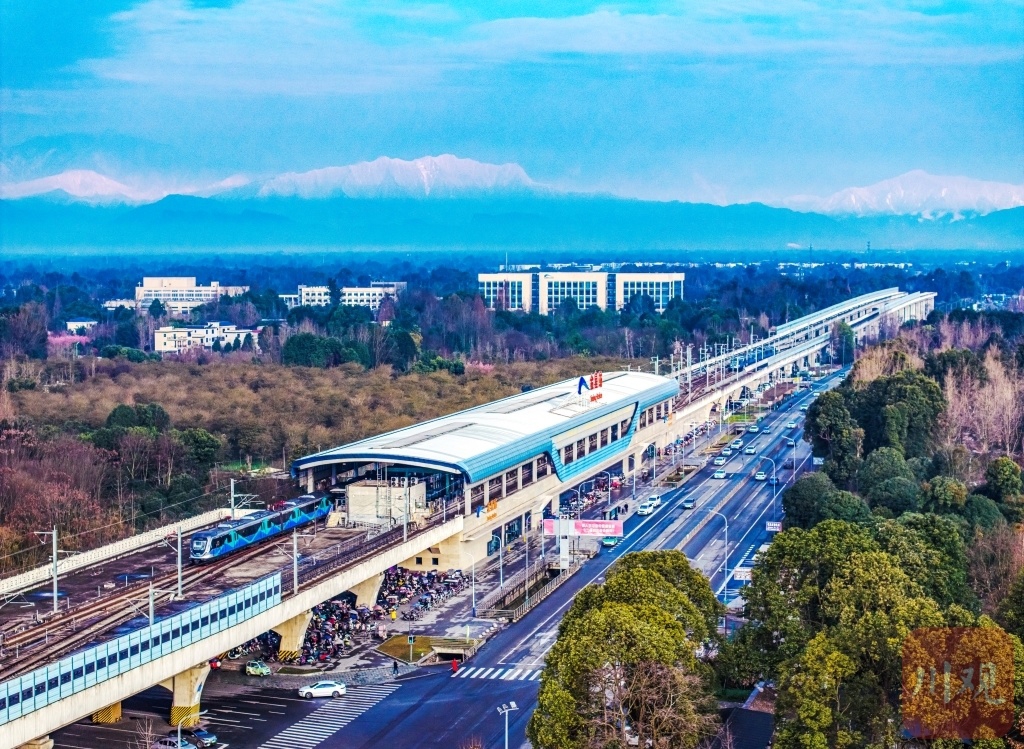 2月25日,成都雨后天晴。位于温江的金星地铁站和远处的雪山同框,城市迎来生机勃勃的新一天。C视觉 张礼彬 摄