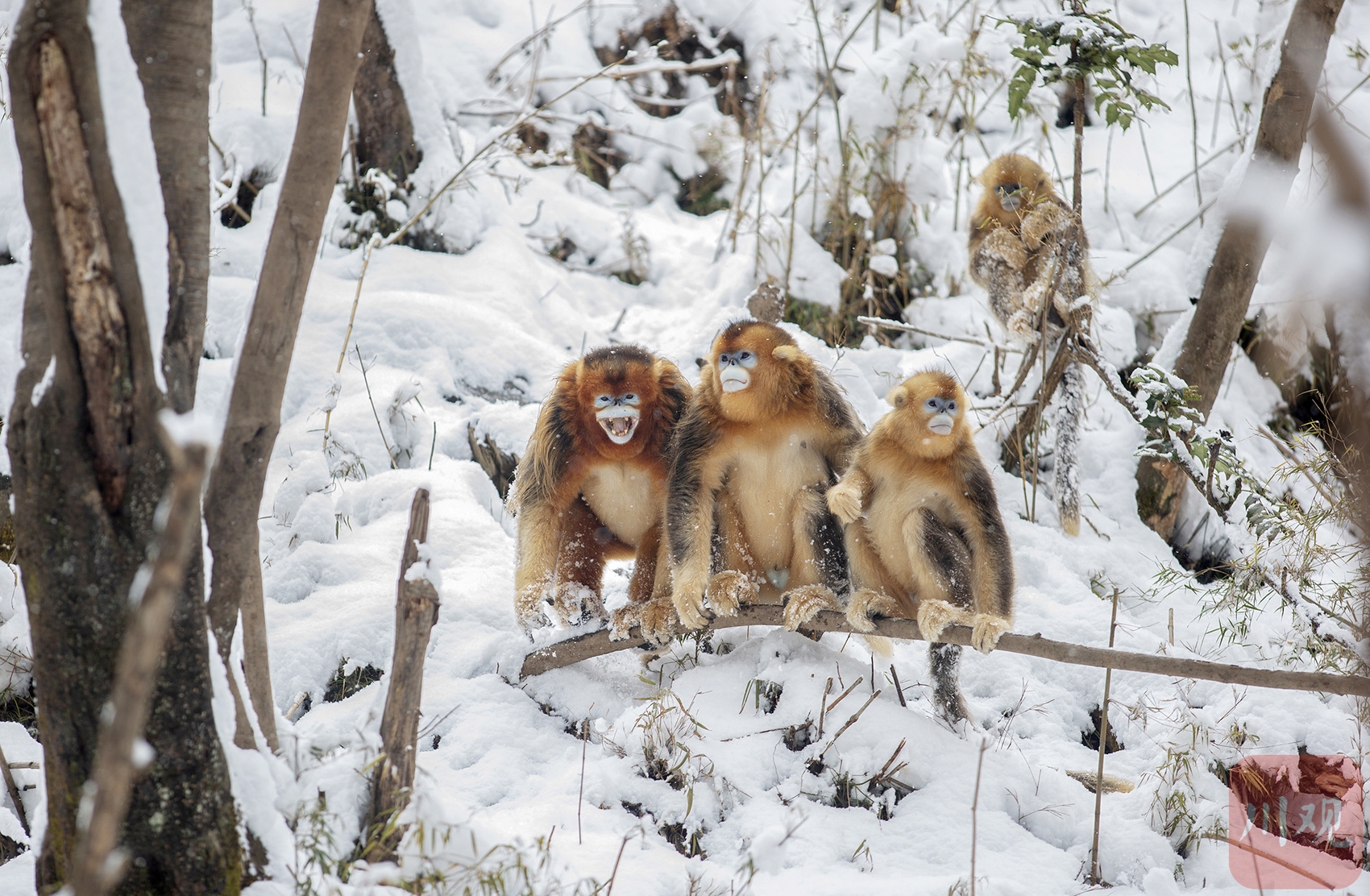 2月24日到25日,四川北部多地迎来降雪。绵阳平武县黄羊关在这场春雪中一派林海雪原的“北国风光”,生活在这里的川金丝猴也在雪中嬉戏打闹,萌态十足惹人爱。