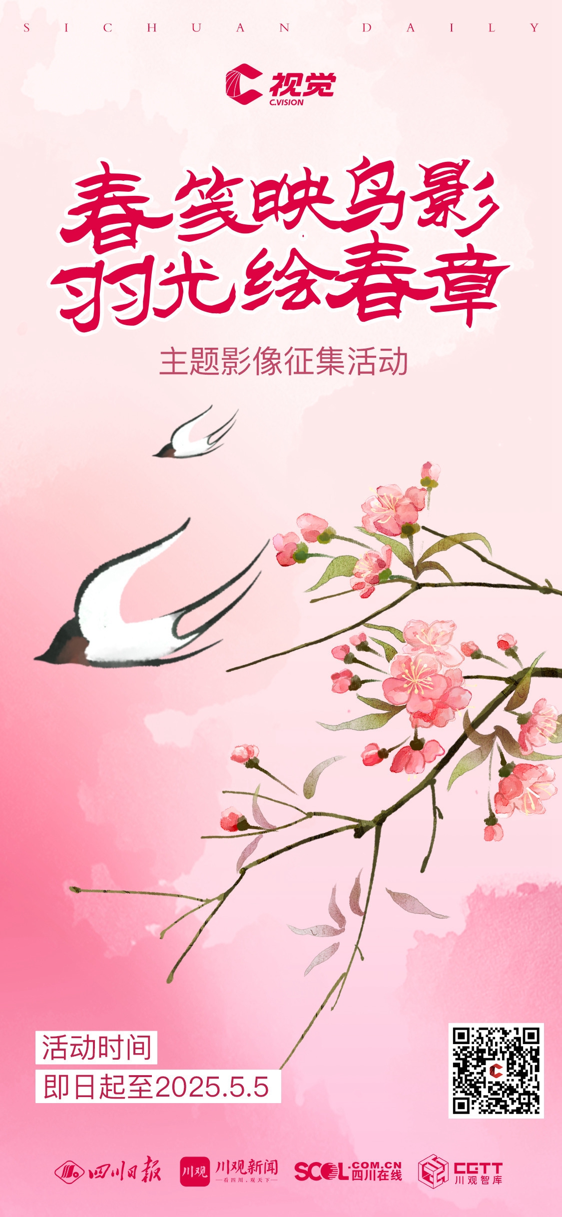 即日起,《C视觉・春笺映鸟影羽光绘春章》主题影像征集活动正式启动。我们期待您用镜头去记录鸟儿与春花相遇的动人画面,鸟儿在花丛中嬉戏的精彩瞬间,鸟儿与自然和谐共生的美好场景,以及人们欣赏这一美景时的温馨时刻。