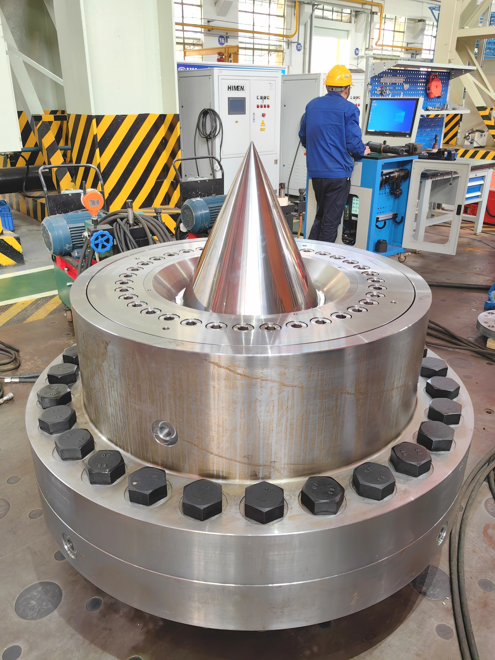 喷嘴装配是冲击式水电机组的核心部件之一,负责将水的势能转化为射流的动能,并通过调节喷针的开度来控制机组的出力,其性能和质量直接关系到整个机组的安全性和可靠性。而喷针和喷嘴口环作为喷嘴装配的核心部件,不仅需要在13.5兆帕的超高试验水压下实现滴水不漏的密封效果,还必须具备极高抗泥沙磨损性能。