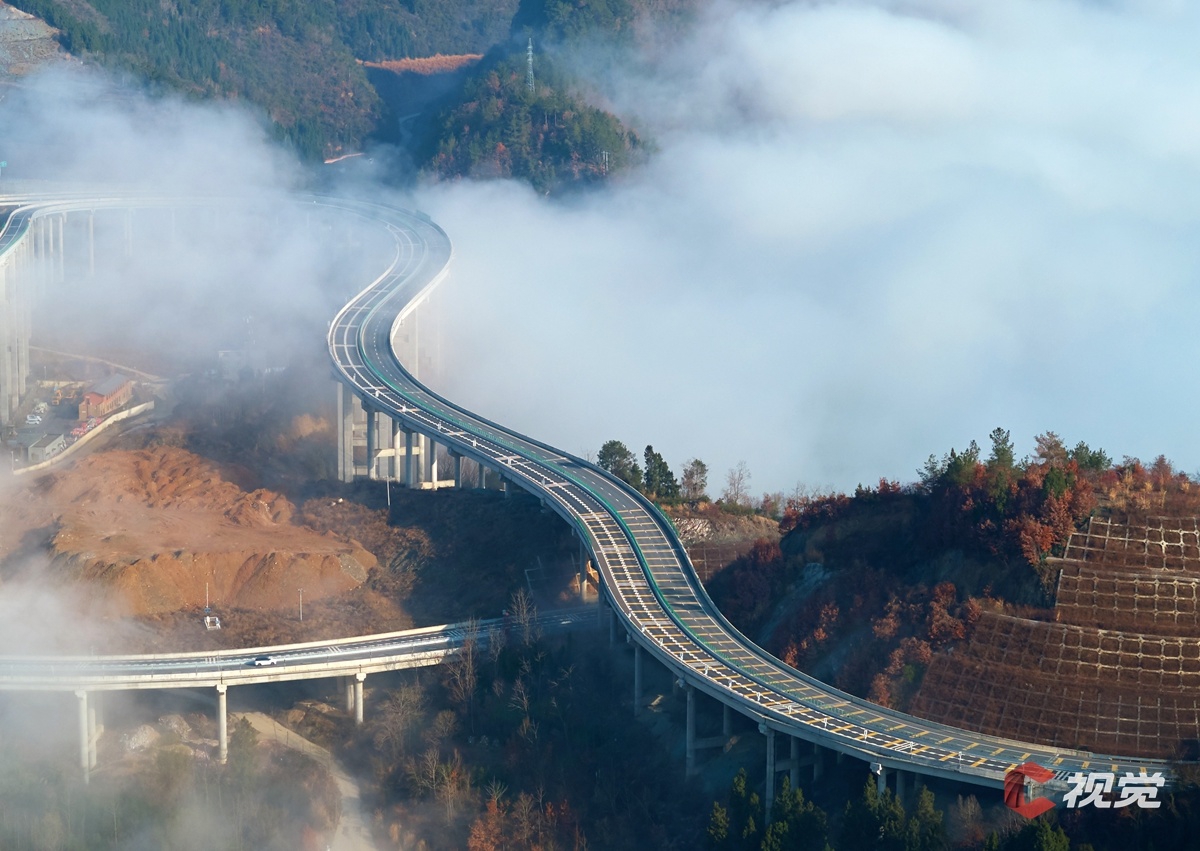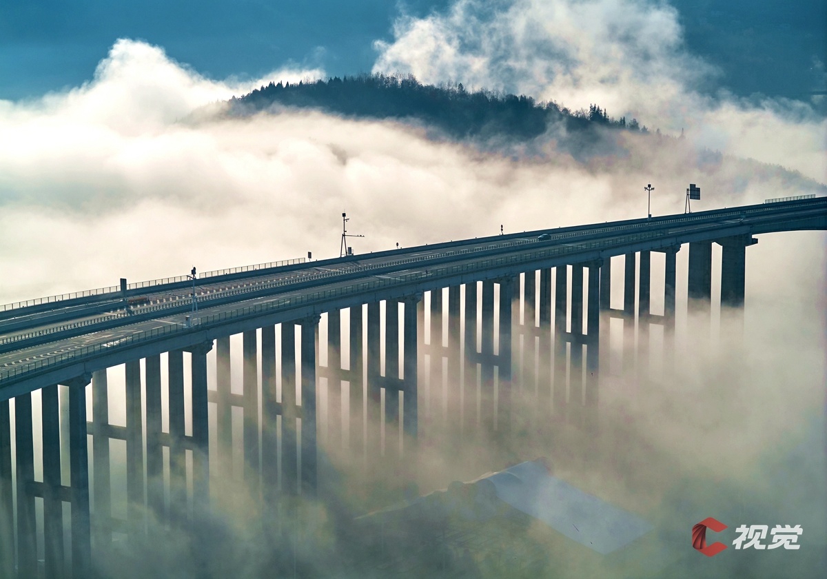 九绵高速平武涪江特大桥再现“云端高速”美景
