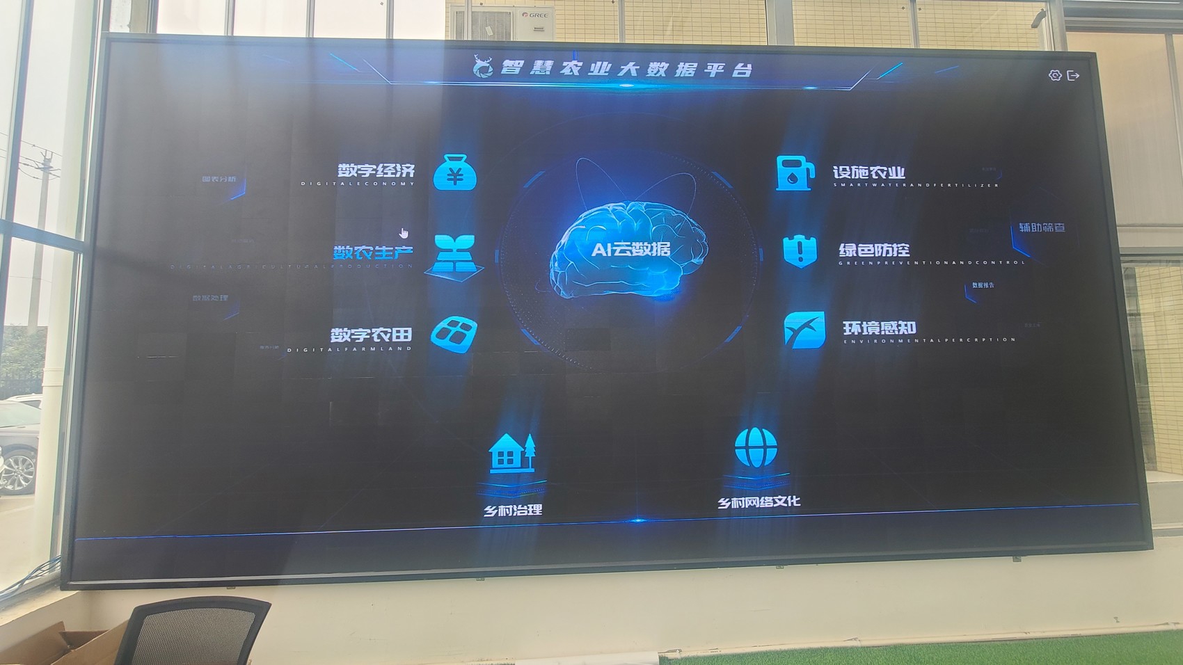 在大棚最东侧,是一块硕大的智慧农业大数据平台,上面可显示数字经济、设施农业等8大数据板块。