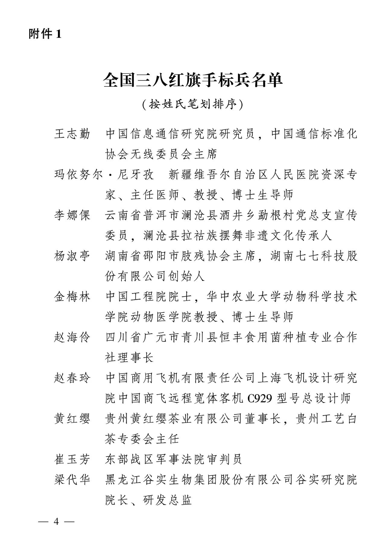此外,我省的万学等20名个人、四川长虹电子控股集团有限公司等12个集体被授予全国三八红旗手(集体)称号,国家税务总局成都市双流区税务局收入核算科、四川国际传播中心等26个单位被授予全国巾帼文明岗称号。