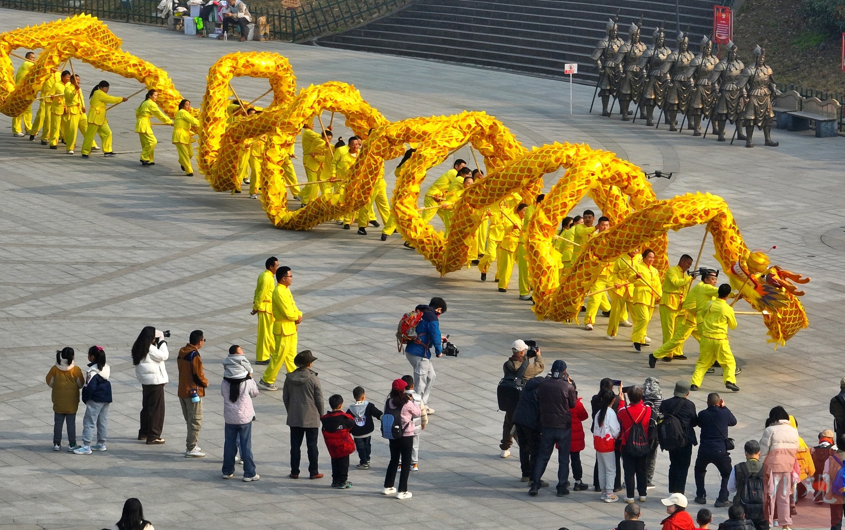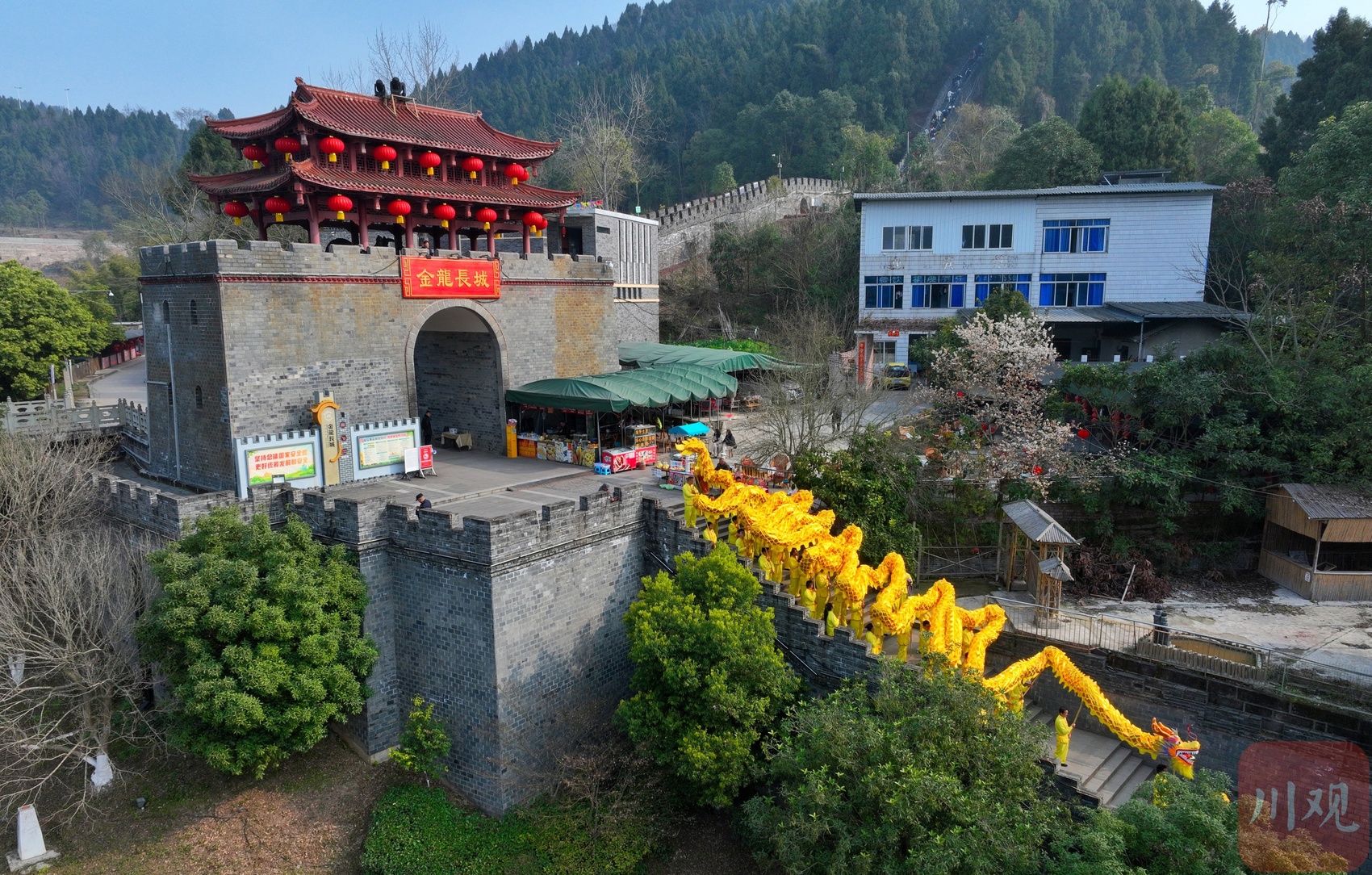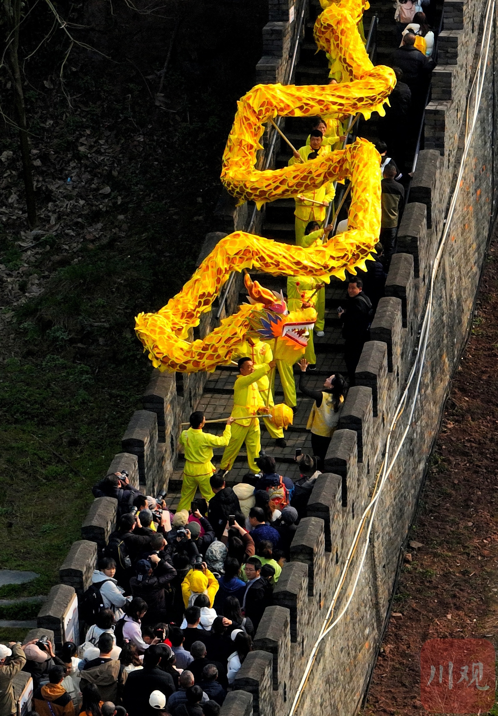金龙长城上舞龙祈福。