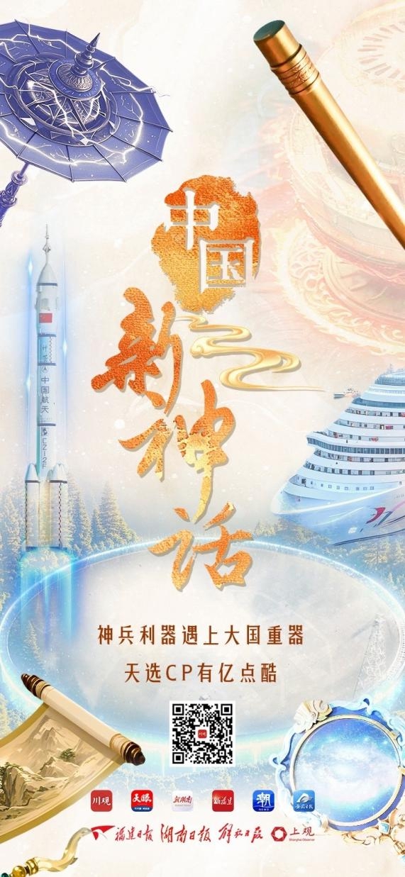 四川日报·川观新闻牵头策划联合安徽、湖北、上海、浙江、湖南、福建、贵州等多省份省级党媒,推出大型联动策划《中国新神话》新媒体产品,以一组“神兵利器遇上大国重器”的AI创意互动海报,展示新时代中国硬核科技实力,展现逐梦星辰大海的豪情壮志。