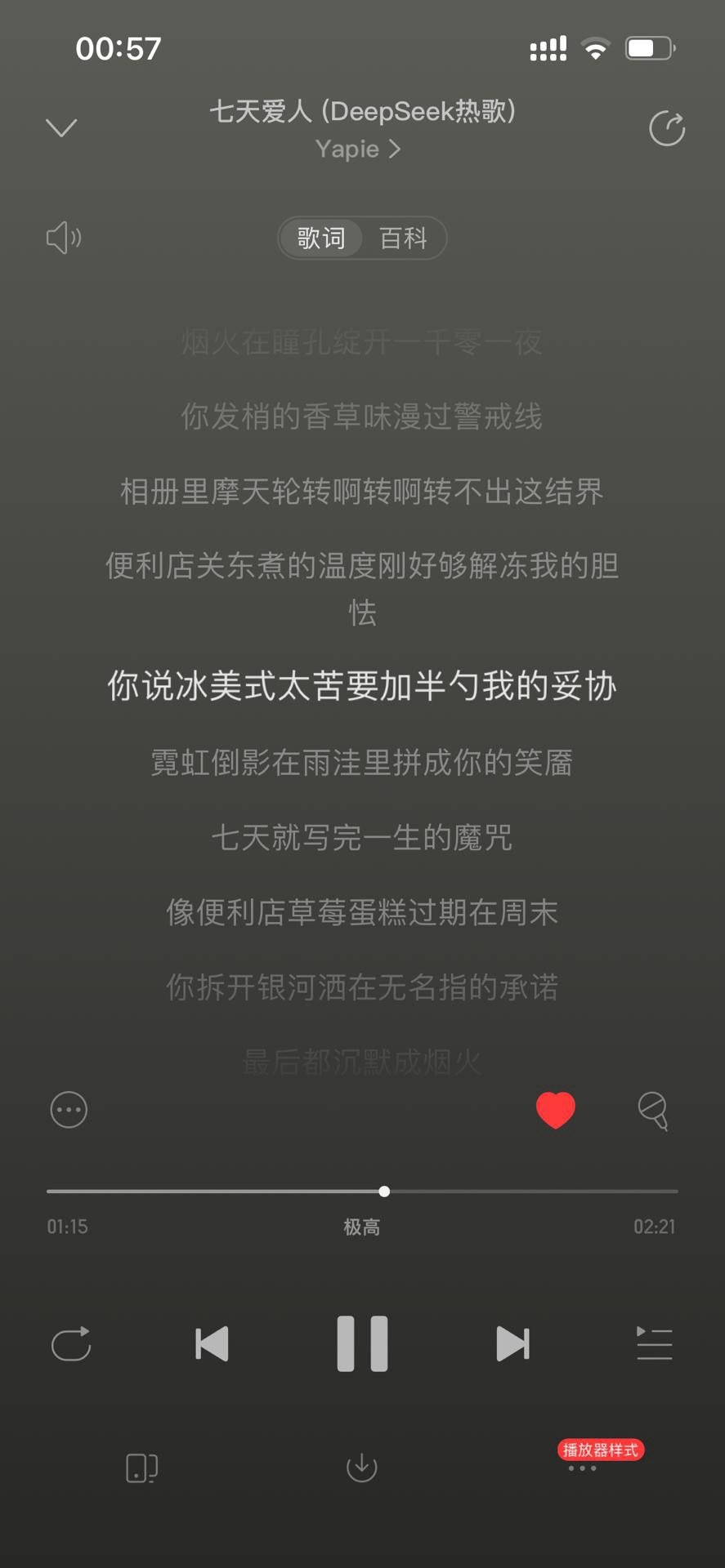 考虑到爱情题材较为宽泛,且对听众而言容易入脑入心,杨平在用deepseek生成歌词时加入了诸多描述和限定,比如,模仿周杰伦的曲风、歌词要有感染力等,同时要涵盖爱情从暗恋的忐忑、热恋的甜蜜、分手的争吵,到最后的爱而不得、情绪纠结等各种情感阶段。deepseek在2分钟左右就写出了这篇歌词,杨平没有做任何修改,并利用“makebestmusic”AI音乐制作软件进行谱曲和演唱,最终形成了完整歌曲。
