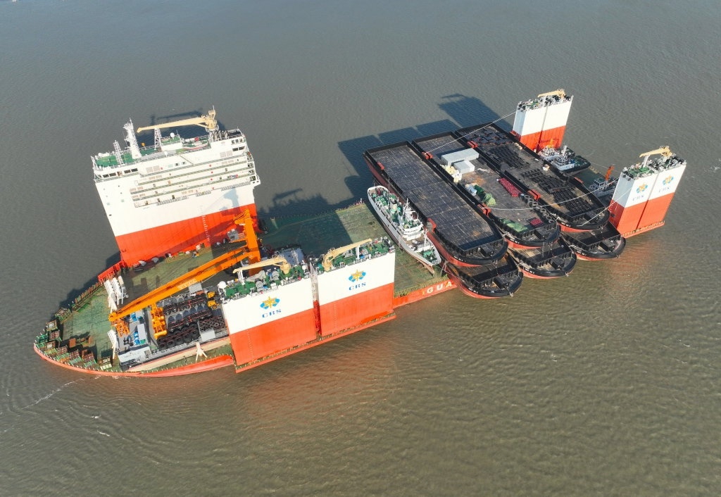 半潜船“华瑞龙”装载13艘船舶驶往非洲