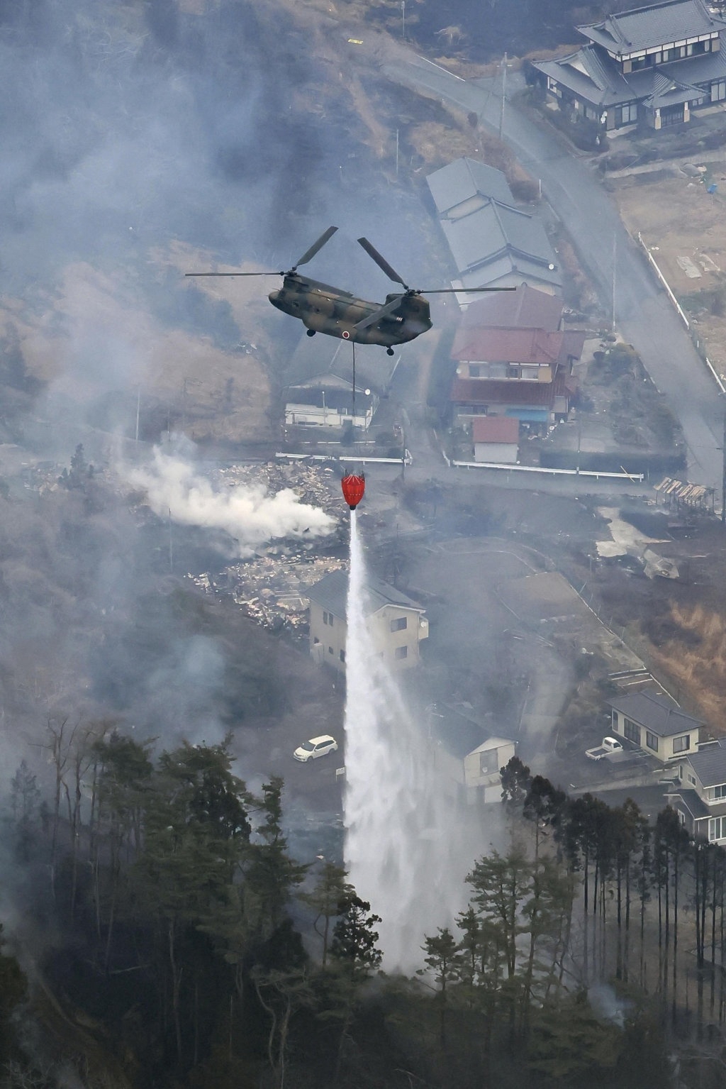 这是3月3日在日本大船渡市拍摄的山火现场画面。