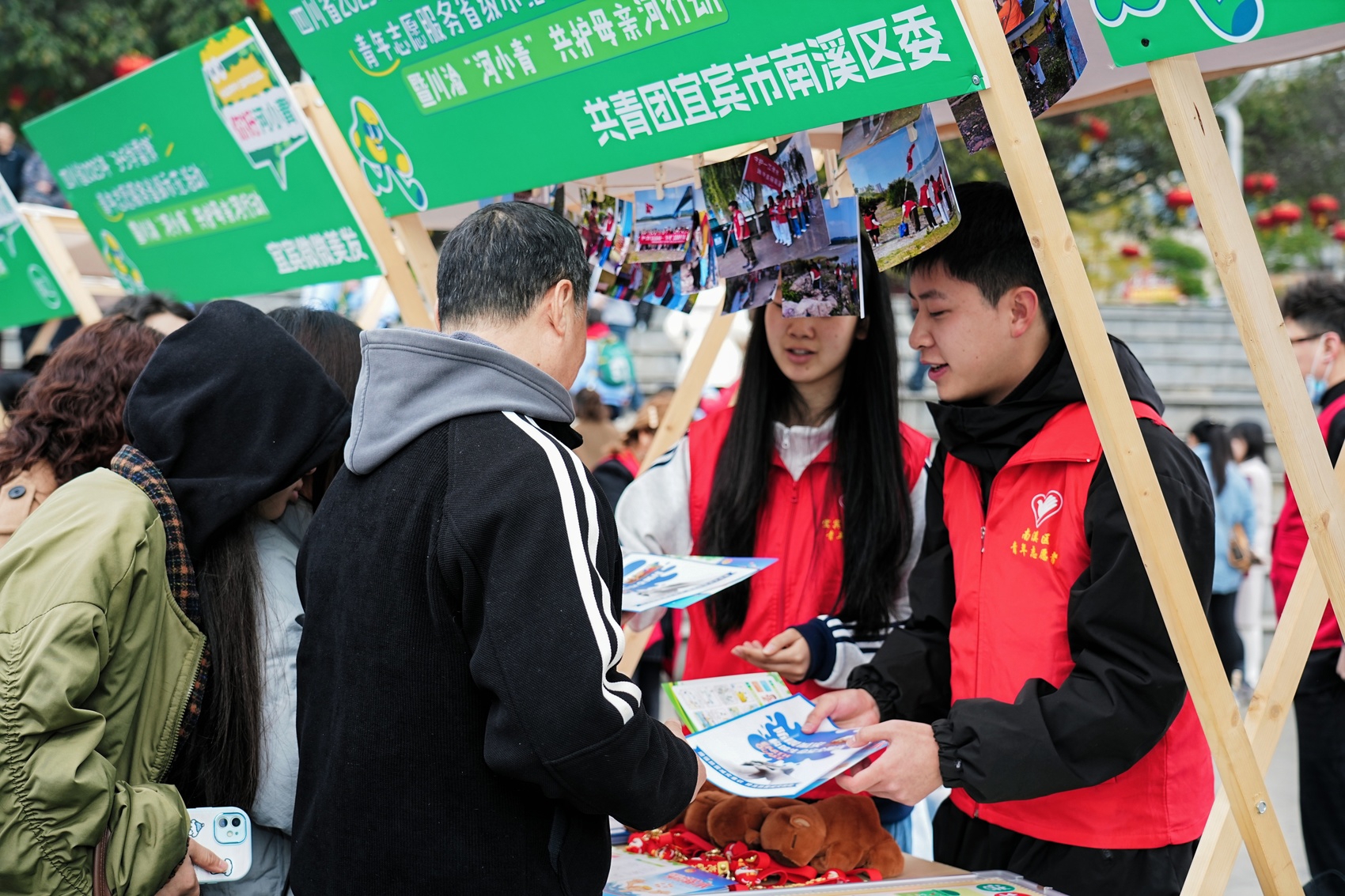 3月4日,宜宾合江门广场,众多市民现场体验各种志愿服务项目。当天,四川省2025年“3·5学雷锋”青年志愿服务省级示范活动暨川渝“河小青”共护母亲河行动在这里举行。