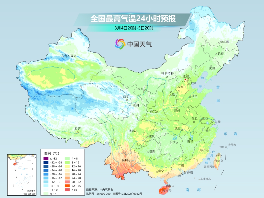 对南方而言,回暖并没那么快。受频繁阴雨影响,南方气温爬升乏力,湿冷还将持续四五天,预计贵州到江南、华南一带气温将持续低迷,较常年同期平均偏低3~6℃左右,其中江南一带普遍只有10°C上下,湿冷感非常明显。