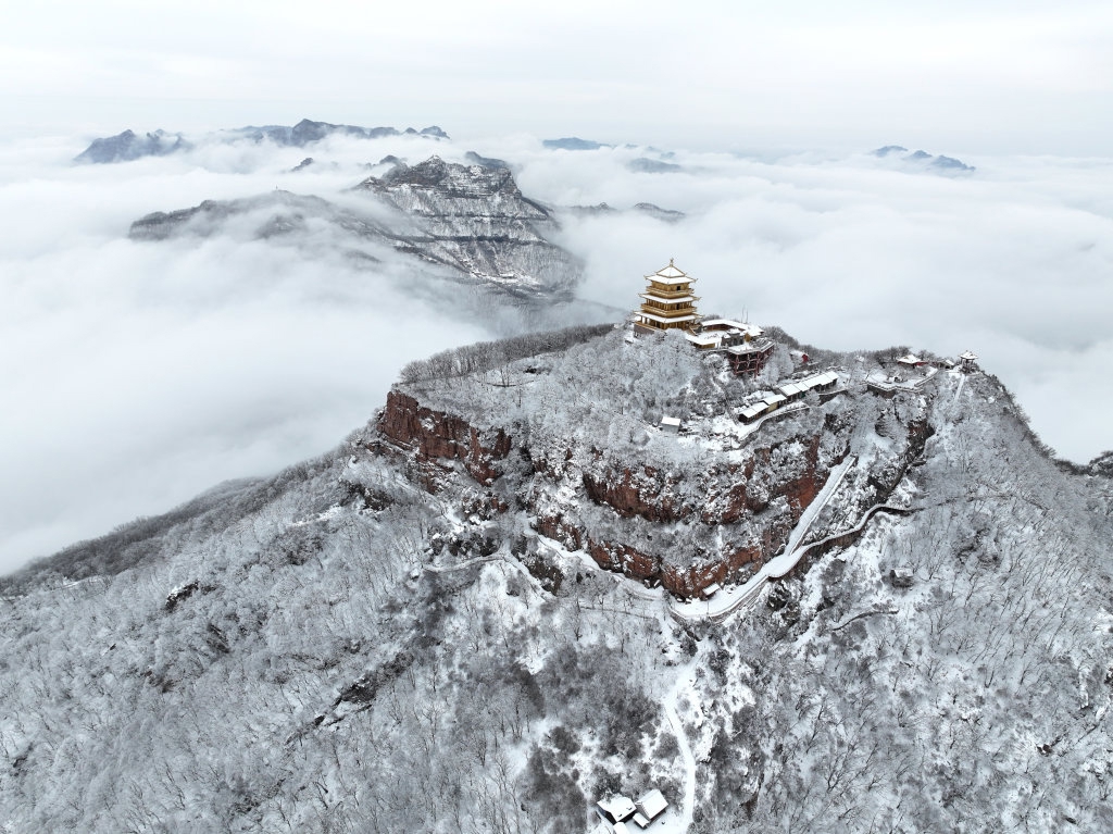 这是3月4日拍摄的河南省济源市王屋山雪景(无人机照片)。