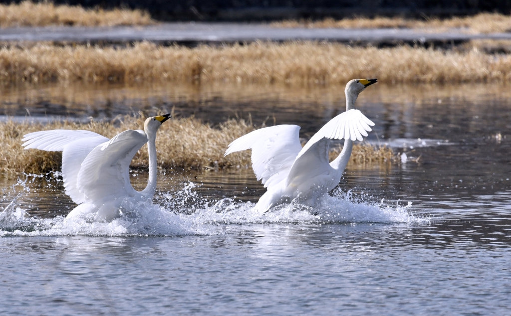 随着气温逐渐回升,大批天鹅、苍鹭等候鸟飞临北京密云水库,在这里栖息觅食、繁育后代。