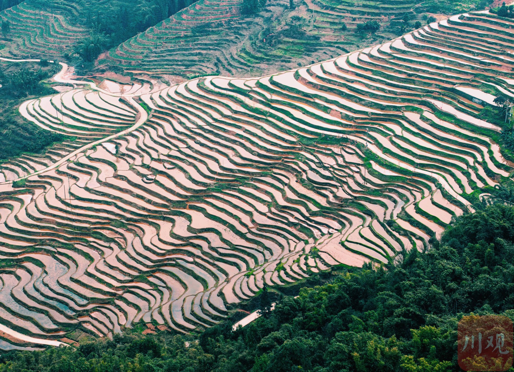 注水完成的梯田。
