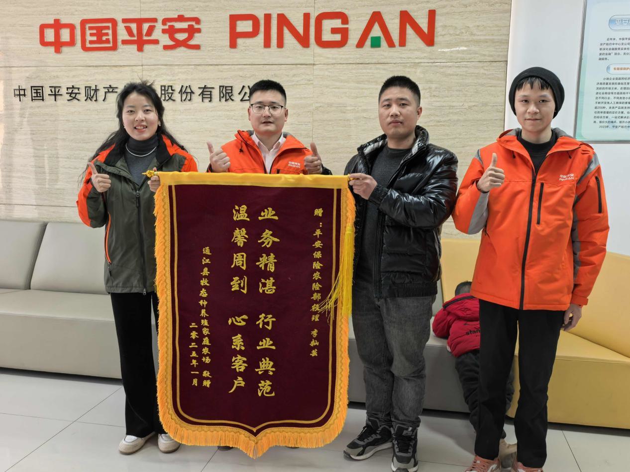 “听了平安农险员的细致讲解,我们抱着试试的心态买了,也正因为这个保险才躲过一劫,我们这次是专门过来给他们送锦旗的。”作为通江县龙凤场镇生猪养殖大户,刘先生养殖场的生猪年出栏量超过3500头,2024年,刘先生投保了平安产险的“生猪养殖保险”和“价格指数保险”,投保期间,养殖场遭遇价格骤降及疫病死亡,平安产险巴中中支开通绿色理赔通道,很快便将16.5万元的赔款送到了刘先生手中,解决了当时养殖场的燃眉之急。支持以家庭农场和农民合作社为主体的养殖业一体化是扶持畜牧业稳定发展的重要一环,截至目前,平安产险巴中中支已为全市9400余户养殖户,提供了超4.8亿元的风险保障。