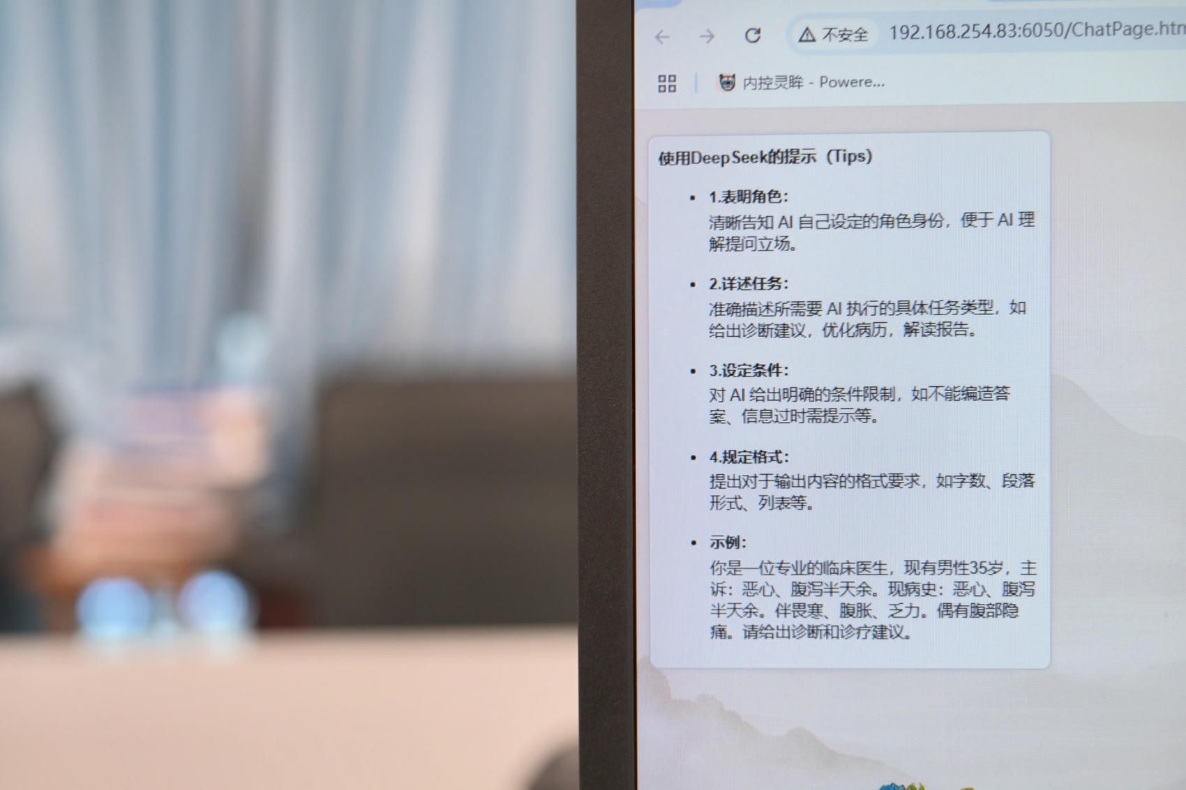 而要用好这名“全科助理医师”并不简单,这非常考验一名医生的沟通技巧。信息团队专门为医生在页面左上角标注了提问技巧清单,包括了“表明角色、详述任务、设定条件、规定格式”等提示。“例如在设定条件的时候,我们建议医生要对AI提出明确的条件限制,如不能编造答案,信息过时需提示等。医生给出的患者信息越具体,提出的需求越明确,DeepSeek给出的回答才能越全面和具体。”成都市一医院信息部工程师雷欢说。