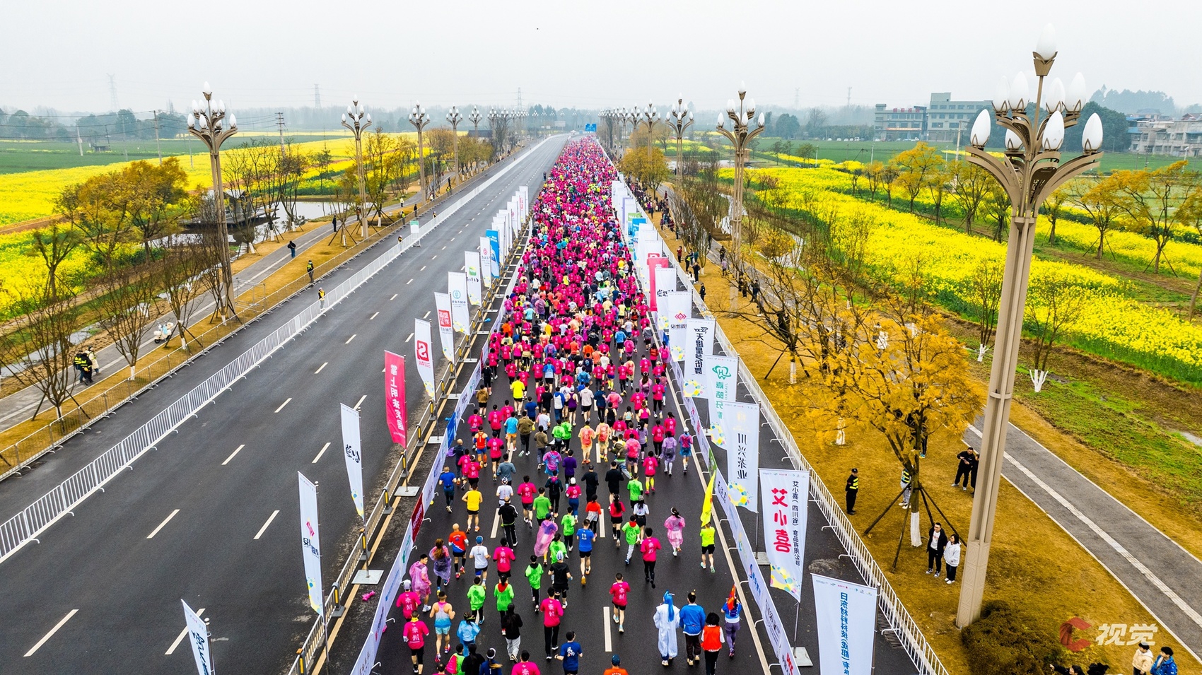 3月9日,崇州市首届半程马拉松在永康西路鸣枪开跑。此次半马赛事线路长度21.0975公里,途经油菜花盛开的天府粮仓示范区、白塔湖旅游专线、道明竹艺村、五星村以及桤木河湿地公园等,赛事共吸引来自国内外的2000名半程马拉松跑者和2500名欢乐跑体育爱好者参加,跑者们奔跑在金色花海之畔,一路美景尽收眼底,享受着春天的运动激情与活力。