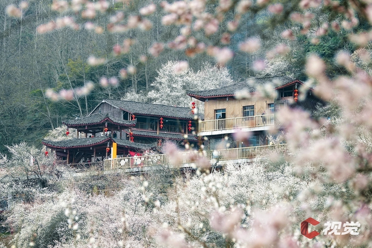 3月8日,位于绵阳市平武县平通羌族乡的印象梅林,万亩青梅花迎来盛花期,各地游客来此漫步梅林,徜徉花海 ,体验“身在花间行,人在画中游”的惬意。