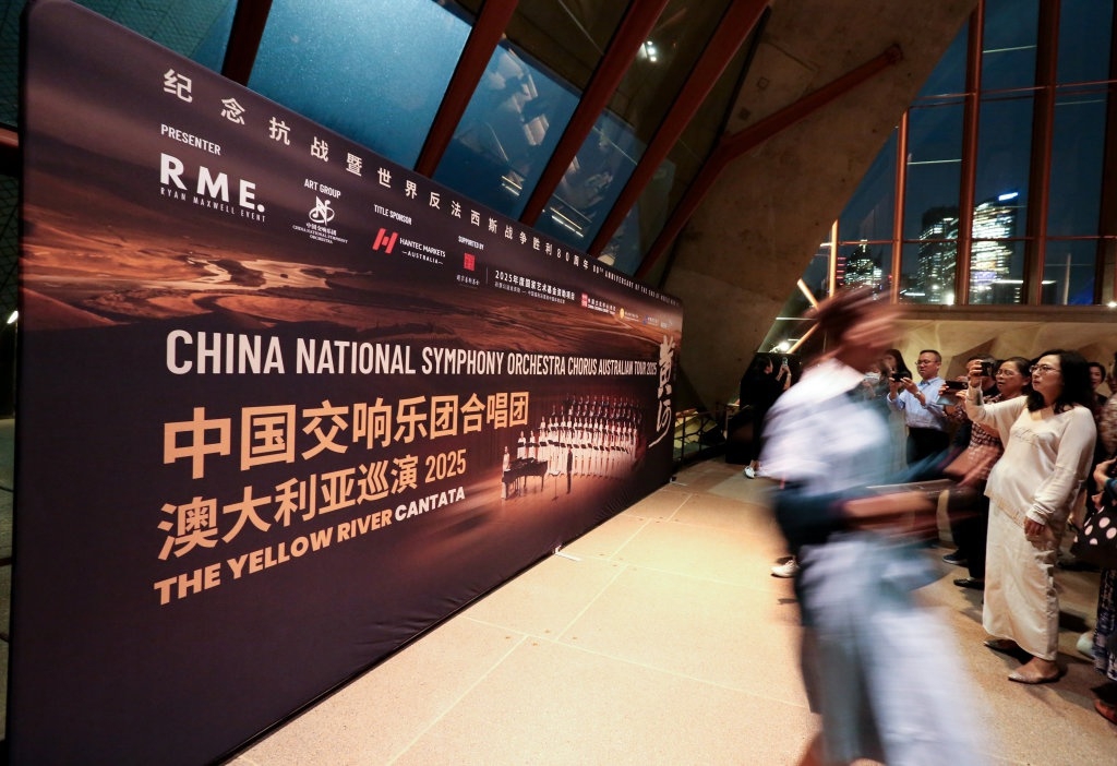 当日,中国交响乐团合唱团在澳大利亚悉尼歌剧院举办《黄河大合唱》音乐会,为当地民众带来一场视听盛宴。