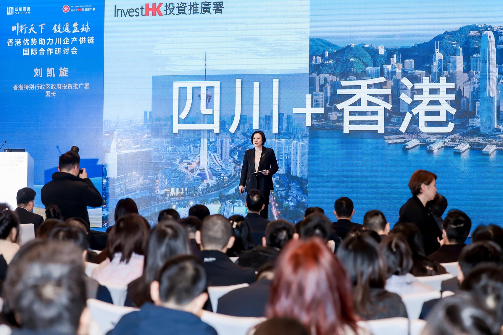3月11日,以“川行天下·链通全球”为主题的香港优势助力川企产供链国际合作研讨会在成都举办。本次活动由四川省商务厅、香港特别行政区政府投资推广署和中央人民政府驻香港特别行政区联络办公室经济部贸易处联合主办,吸引了四川本地约150位企业、机构代表参会。