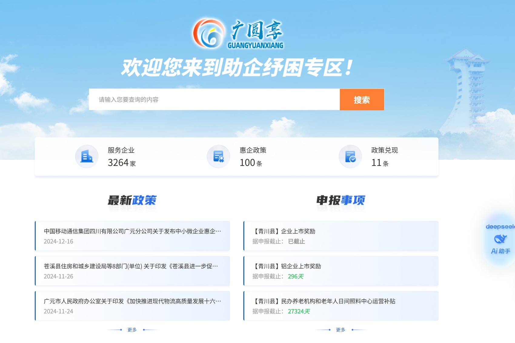 日前,“广圆享”助企惠企平台部署本地化DeepSeek大模型,通过人工智能技术优化企业获取政策的途径,为企业提供精准高效的惠企政策“一站式”服务,助力企业腾飞发展。3月11日,四川在线记者走进广元市政务服务和公共资源交易中心(以下简称“广元市政务服务中心”),体验DeepSeek如何“秒懂”企业需求,帮助企业快速找准政策。
