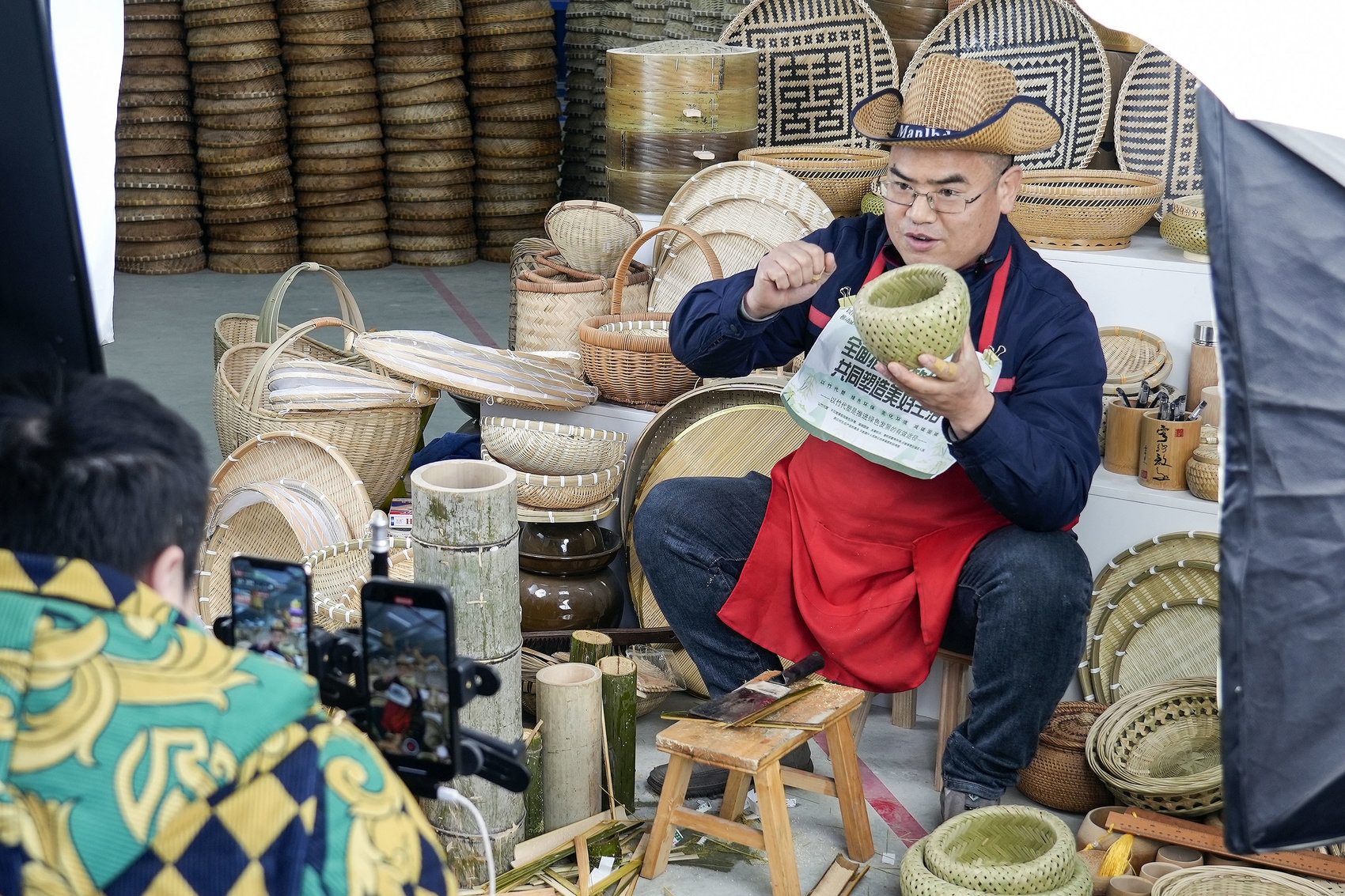“欢迎下单,当天发货!”3月7日一大早,西南(自贡)国际陆港的中通快递川南分拨中心内,电商达人“筲箕哥”带领主播团队开始直播带货竹编产品,旁边的仓库里,工作人员忙着打包。