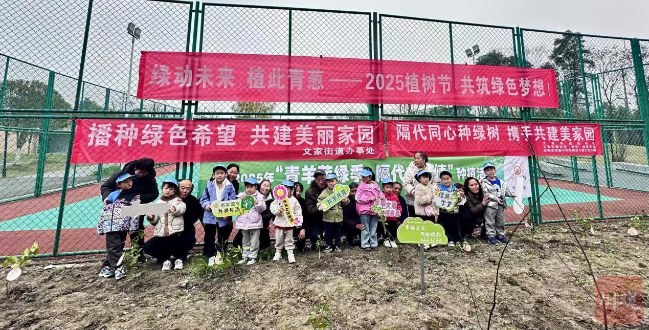 植树节来临之际,3月11日上午,成都市青羊区文家街道办事处联合成都市青羊区社区教育与青少年服务中心、成都市实验小学附属幼儿园文翁分园,在文家街道乐跑园开展“隔代同心种绿树携手共建美家园”主题活动。十一组家庭沉浸式协作共植“时光树”,以绿色行动传递生态文明理念,架起代际情感联结。