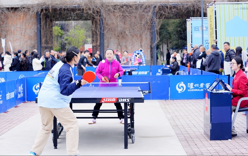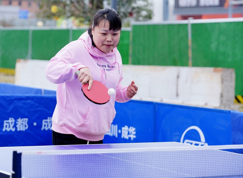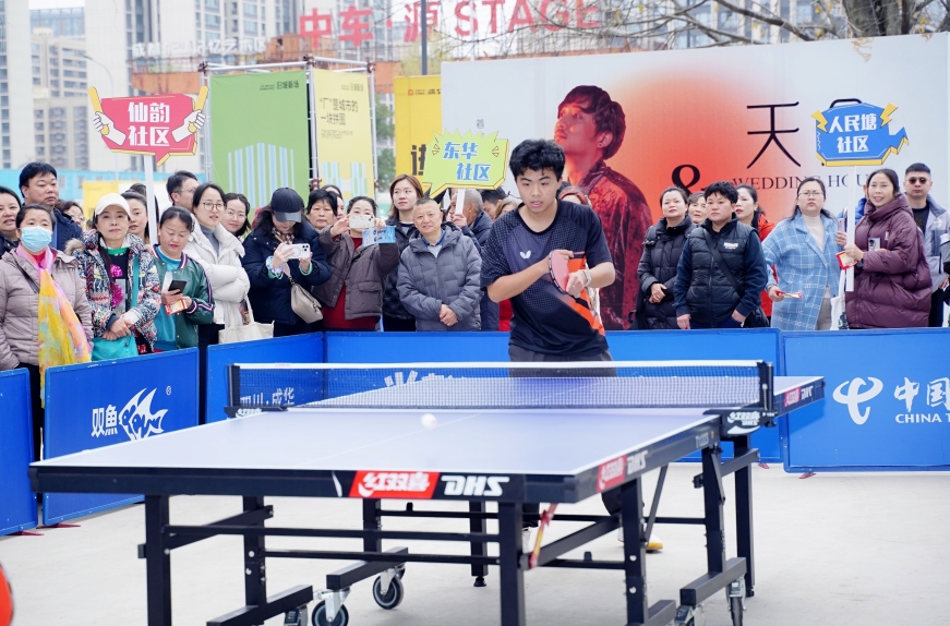 3月12日,一场别开生面的乒乓球比赛在成都成华区中车·源stage街区举行,奥运冠军陈龙灿、亚洲冠军陈平西来到现场,与成都市成华区二仙桥街道的居民一起感受运动的快乐。