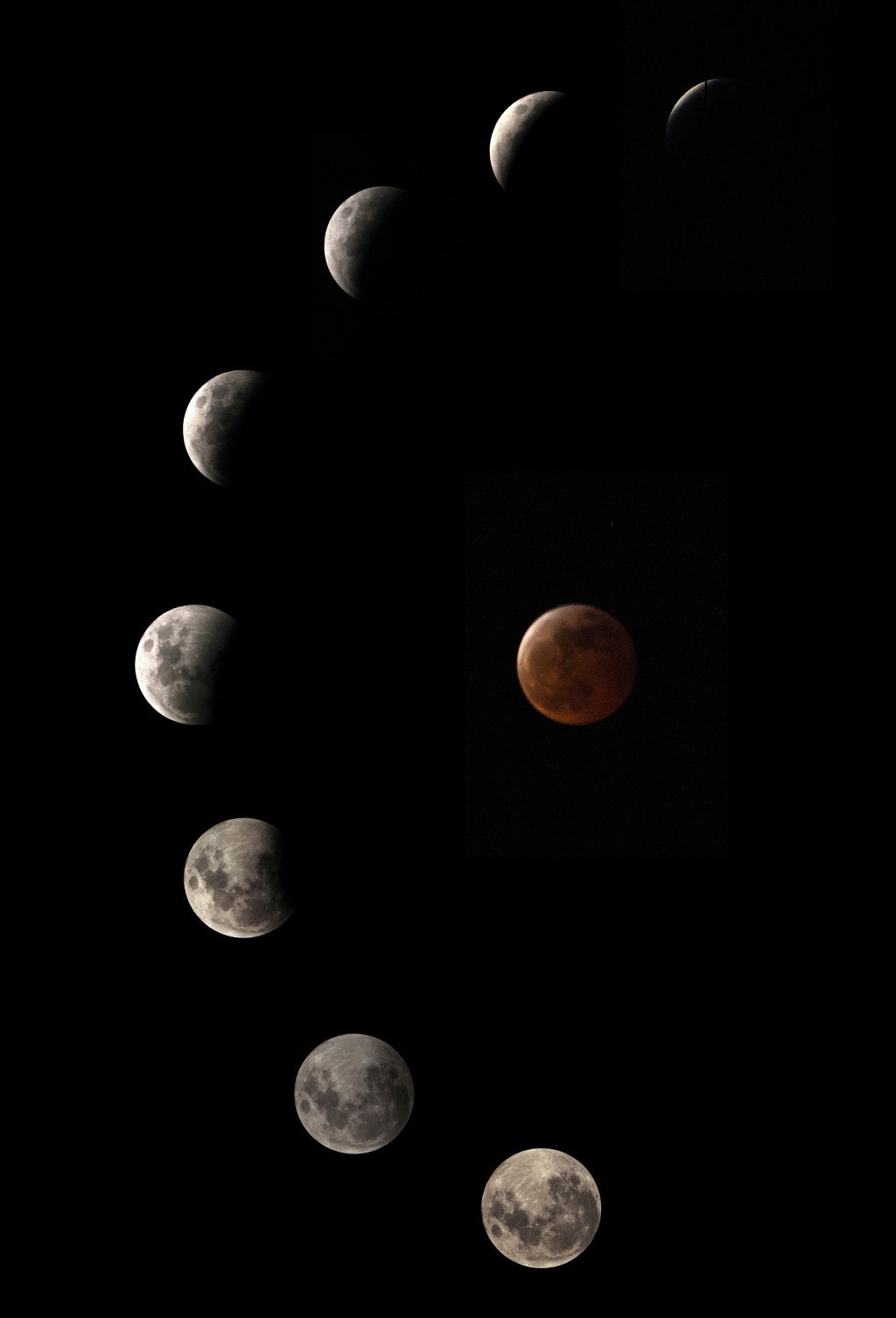 这张拼版照片显示的是3月13日至14日在洪都拉斯首都特古西加尔巴拍摄的月食。