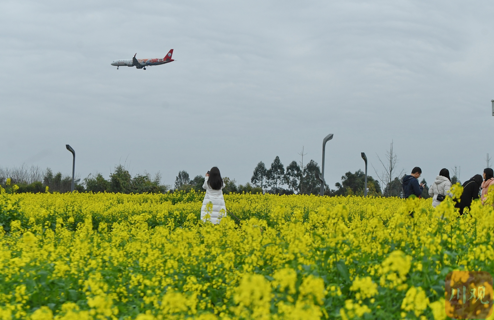2025年3月15日,成都市双流区黄水镇的万亩油菜花陆续绽放,吸引众多游客前来赏花、露营、看飞机、拍照打卡,尽情乐享春日美好时光。