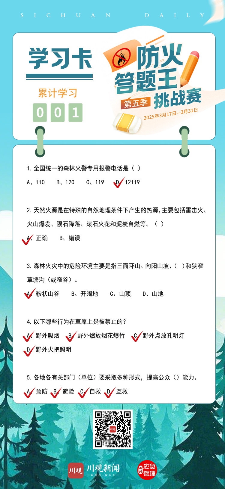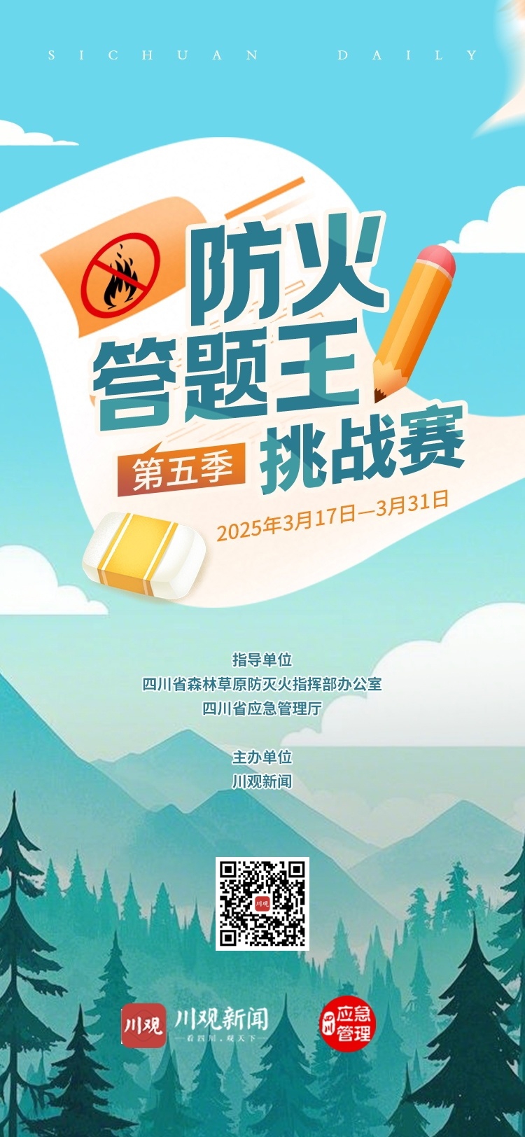 入口二:在川观新闻首页,点击下方“川观答题”,找到防火“答题王”挑战赛第五季活动图片,点击即可参与活动;