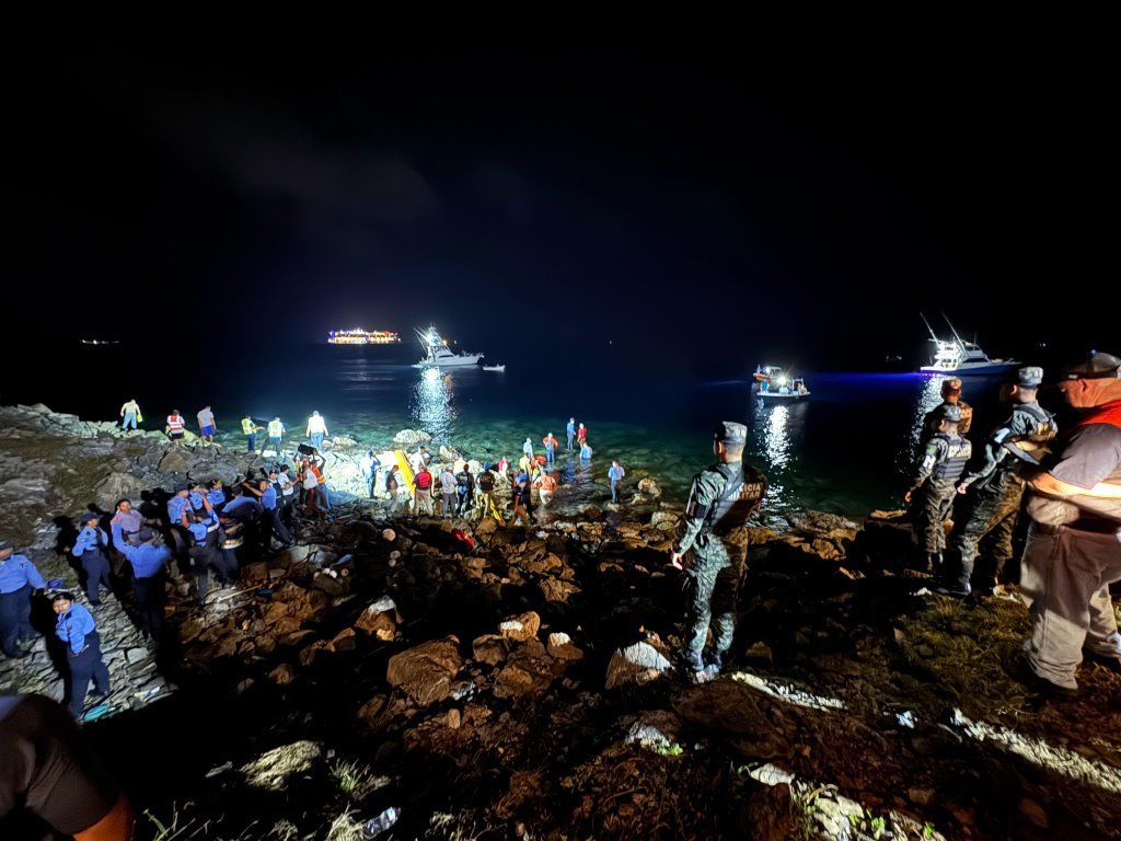 3月17日,救援人员在洪都拉斯罗阿坦岛的飞机坠毁事故现场附近搜救。