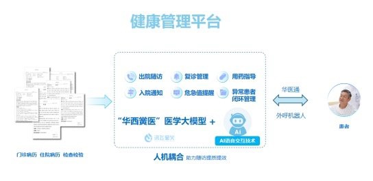 大模型如何帮助患者就医、医生看病?诊前,“说说哪里不舒服,我来帮你找科室”……华西医院AI智能导诊系统为患者提供一键式的咨询问答、就医引导等服务,智能引导患者寻找对症的科室、匹配合适的医生。候诊时,系统将辅助医生引导患者陈述病情,自动提取关键信息,自动识别历史检查检验报告,自动生成预问诊病历模板,帮助医生掌握病情。医院还针对就诊后的患者构建全程健康管理平台,提供个性化全程管理服务,上线以来已累计外呼超120万人次。