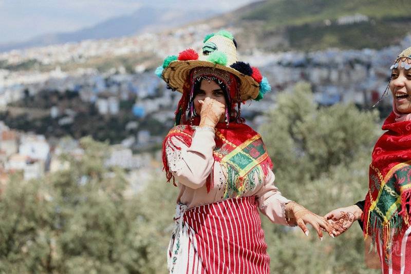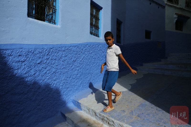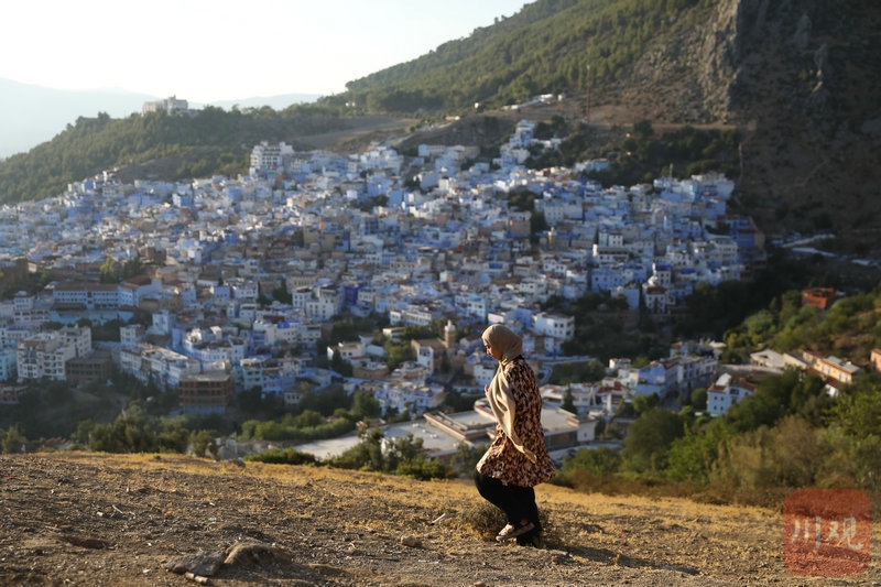 世界有四大蓝色之城,我有幸去过突尼斯的西迪布萨义德、印度的焦特布尔以及摩洛哥的舍夫沙万。初见舍夫沙万,下车远眺时,便看到两个身着盛装、手臂带有精致彩绘图案的摩洛哥山区女孩路过,我快速捕捉到了她们自然羞涩的美丽瞬间。