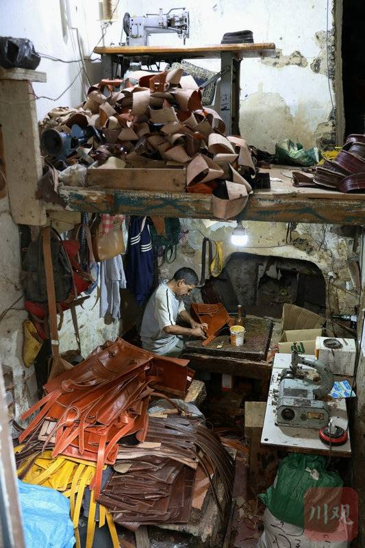 菲斯古城里皮革小作坊辛勤劳作的工人。